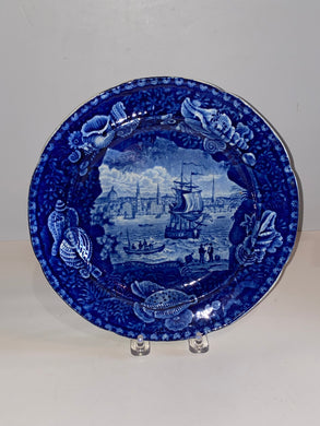 Historical Staffordshire Blue Macdonough’s Victory Plate 9 1/8” Ca. 1825