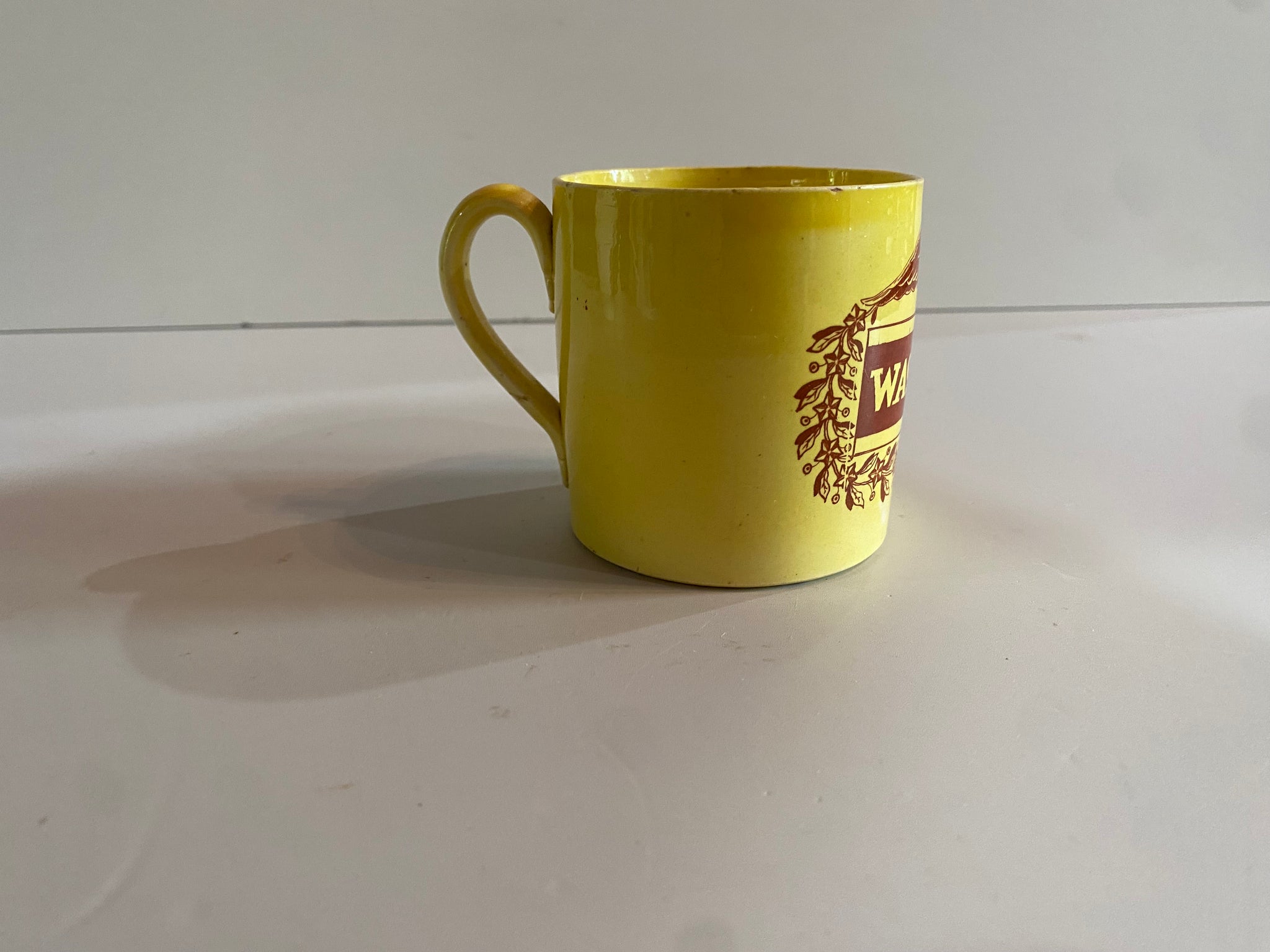 Staffordshire Canary Childs mug with American Eagle with “WASHINGTON” in a cartouche. Very good condition with just a very tiny chip on the inner rim. It measures 2 5/8” tall and dates circa 1820’s.