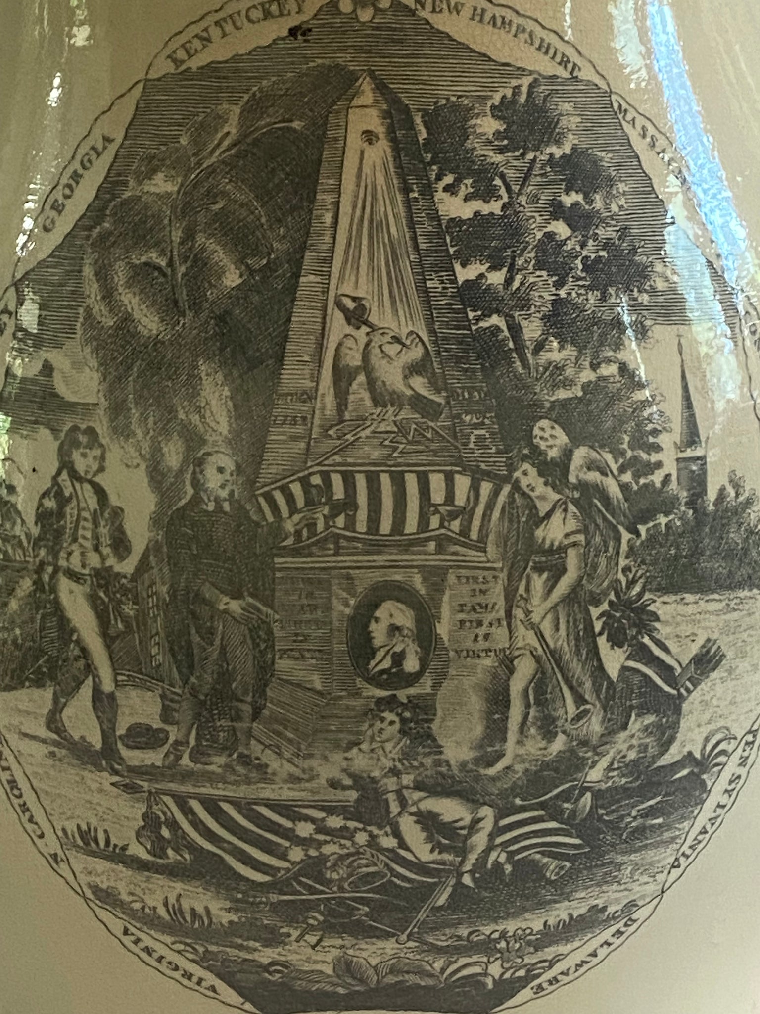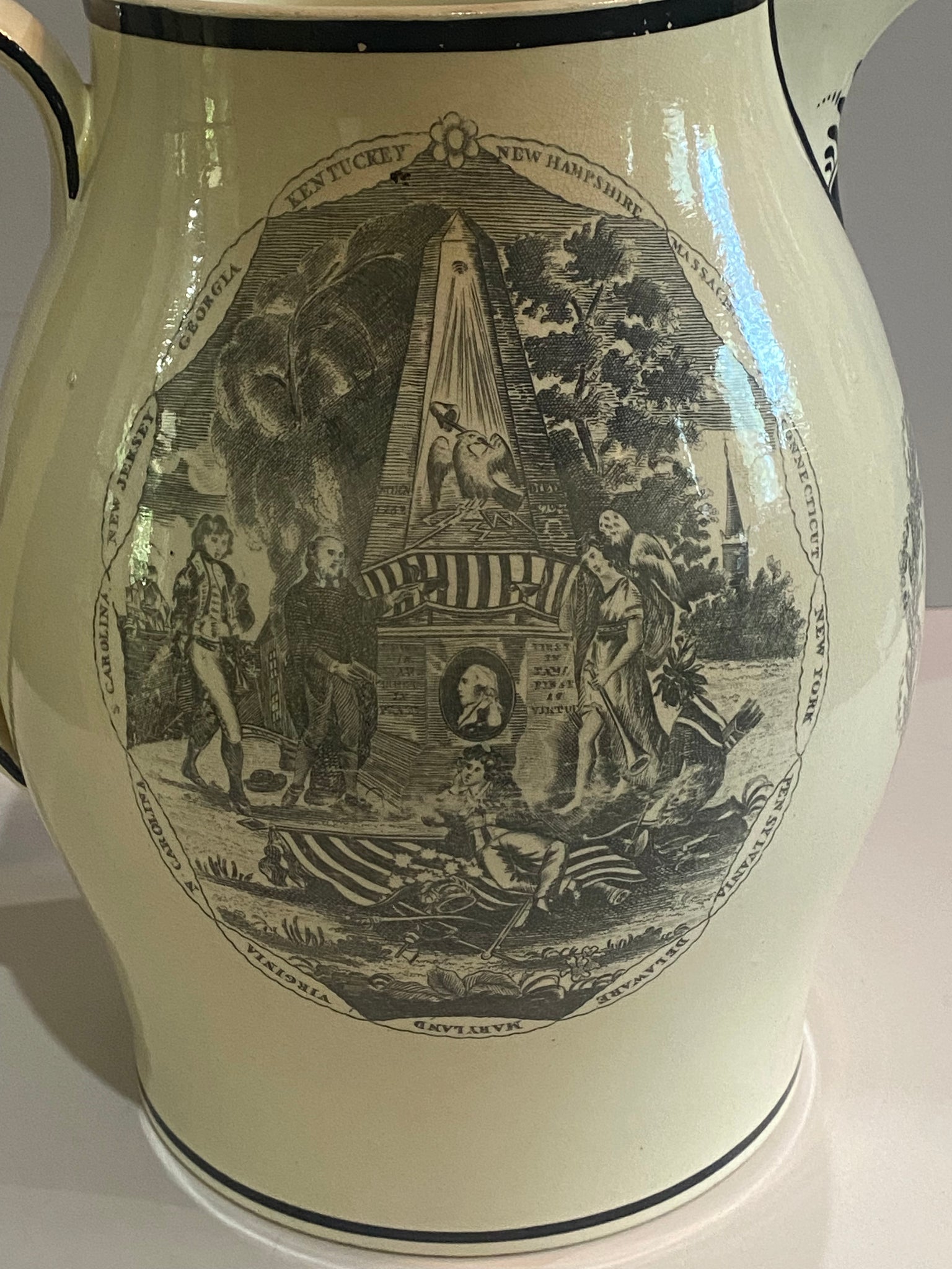 Staffordshire Creamware Liverpool Pitcher Huge Washington Chain States Ca. 1800