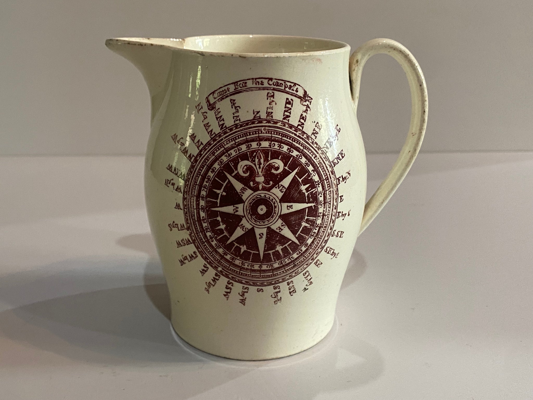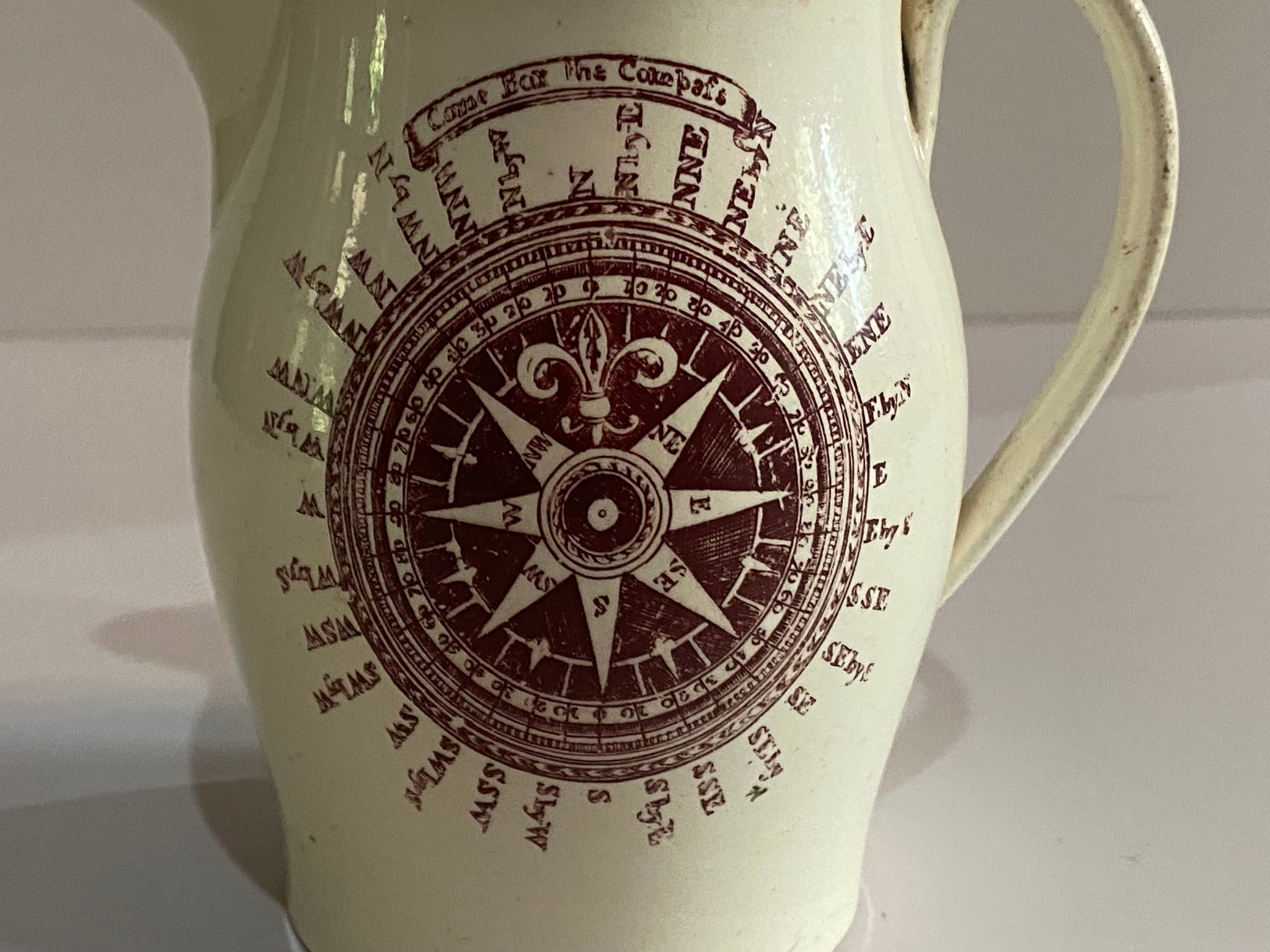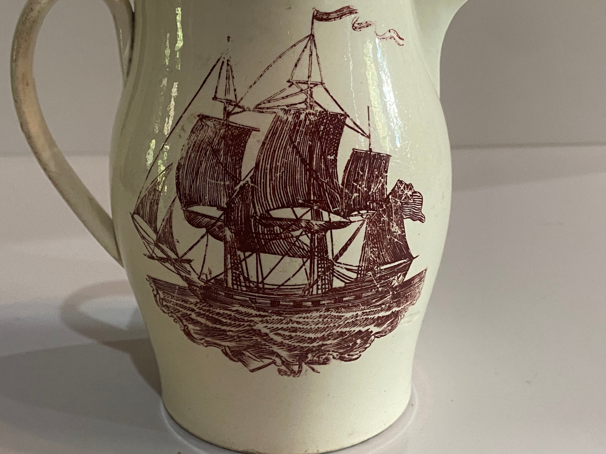 Staffordshire Creamware Very Small Liverpool Pitcher Come Box Compass And Ship