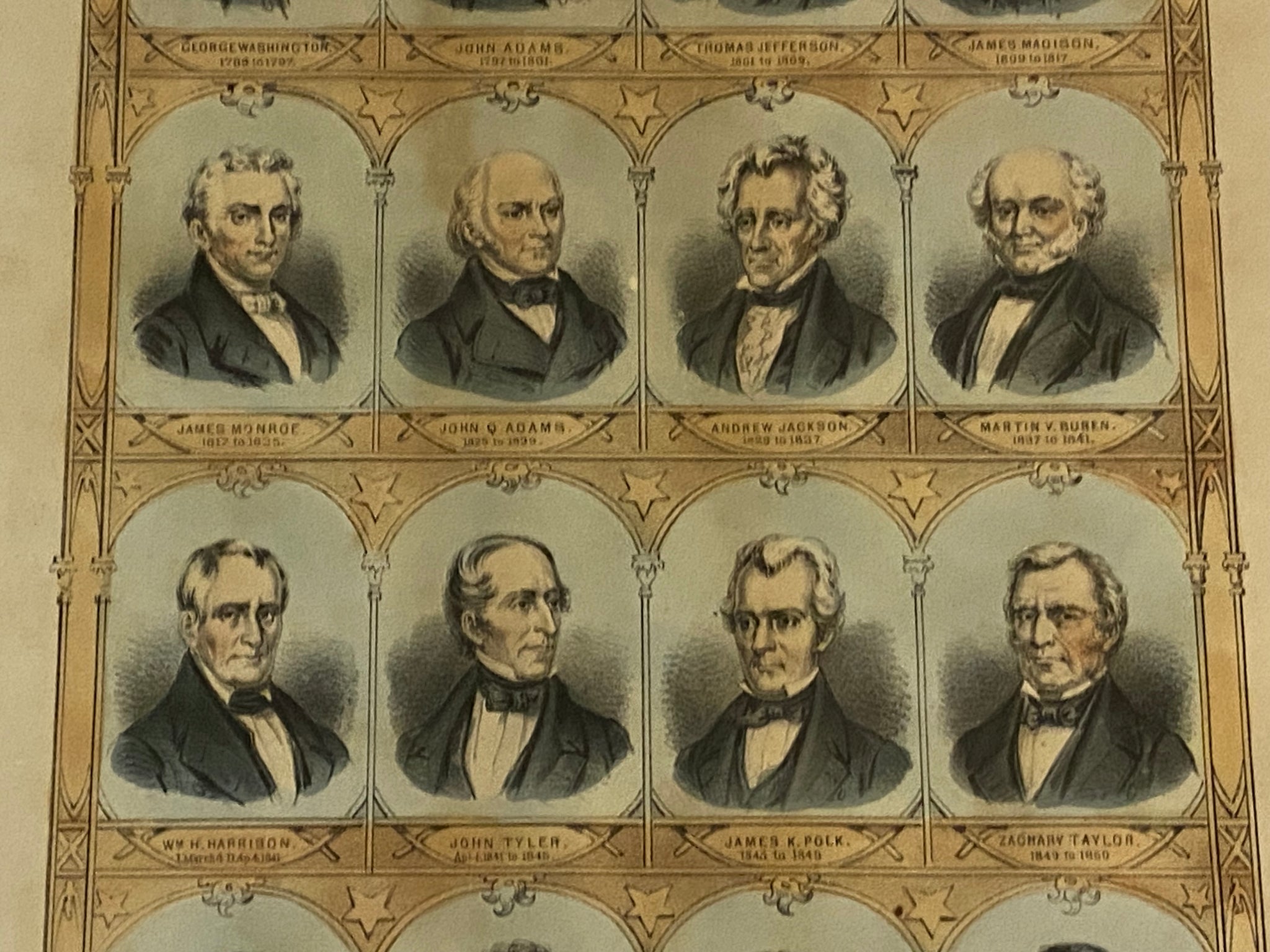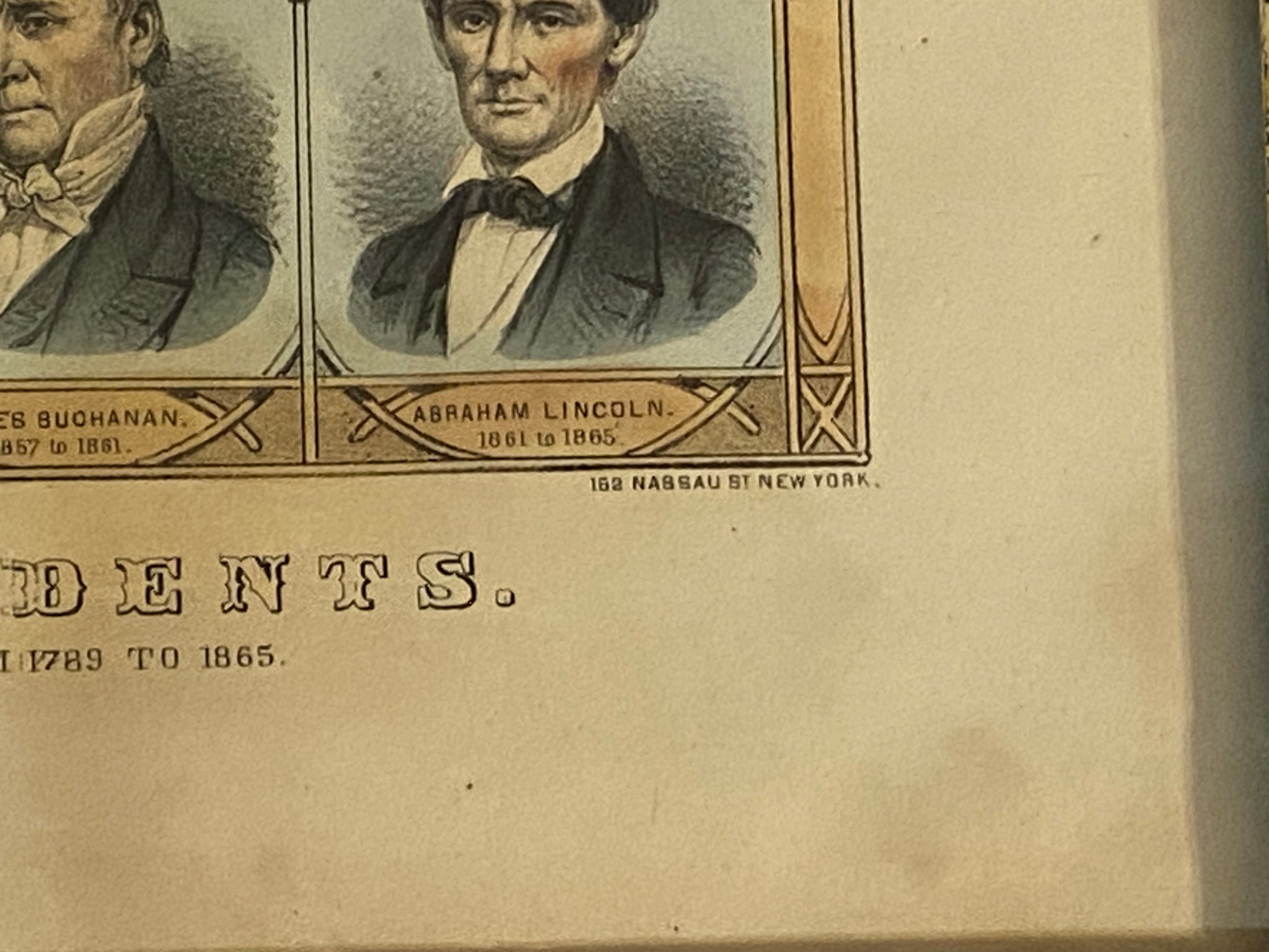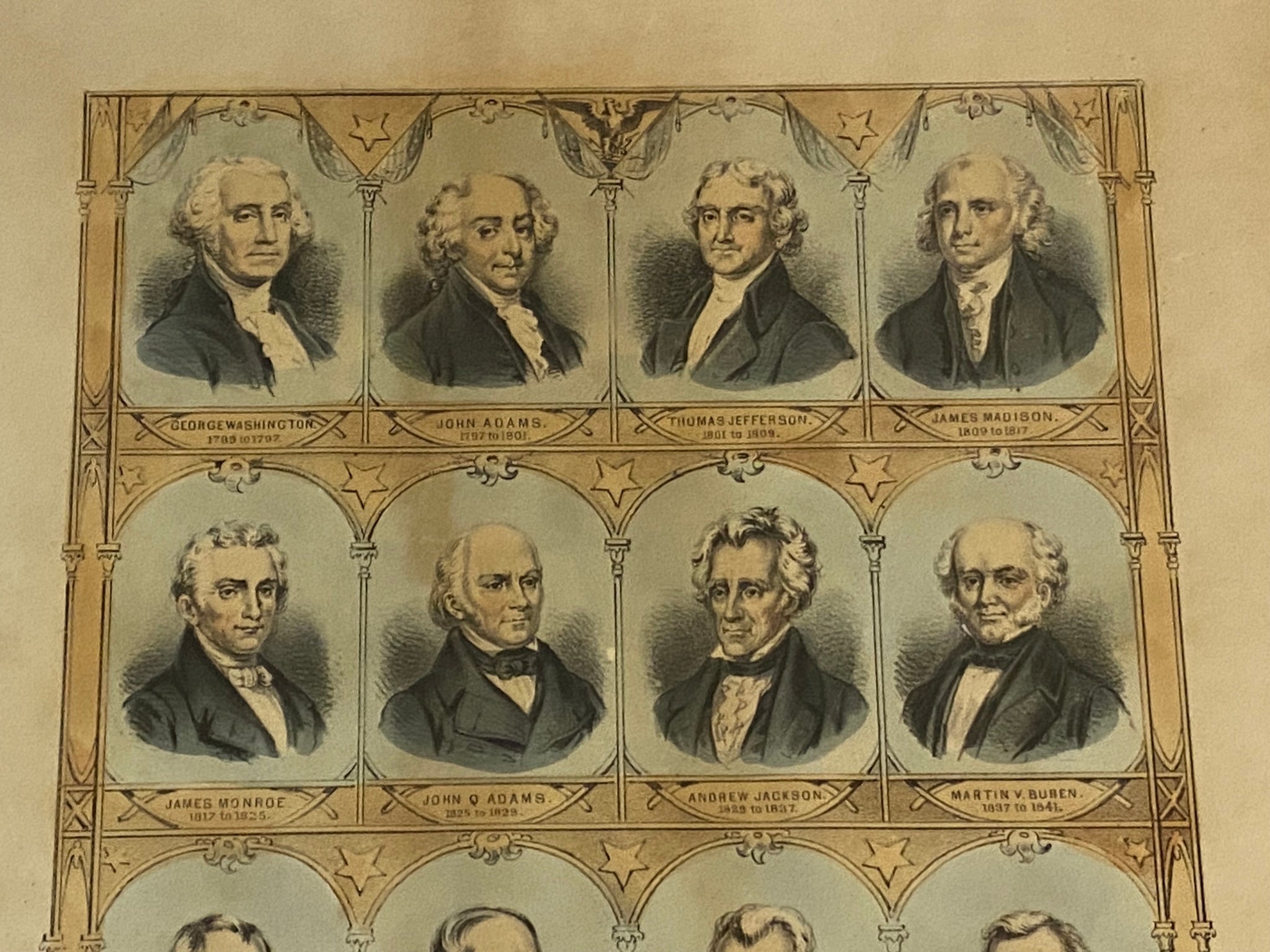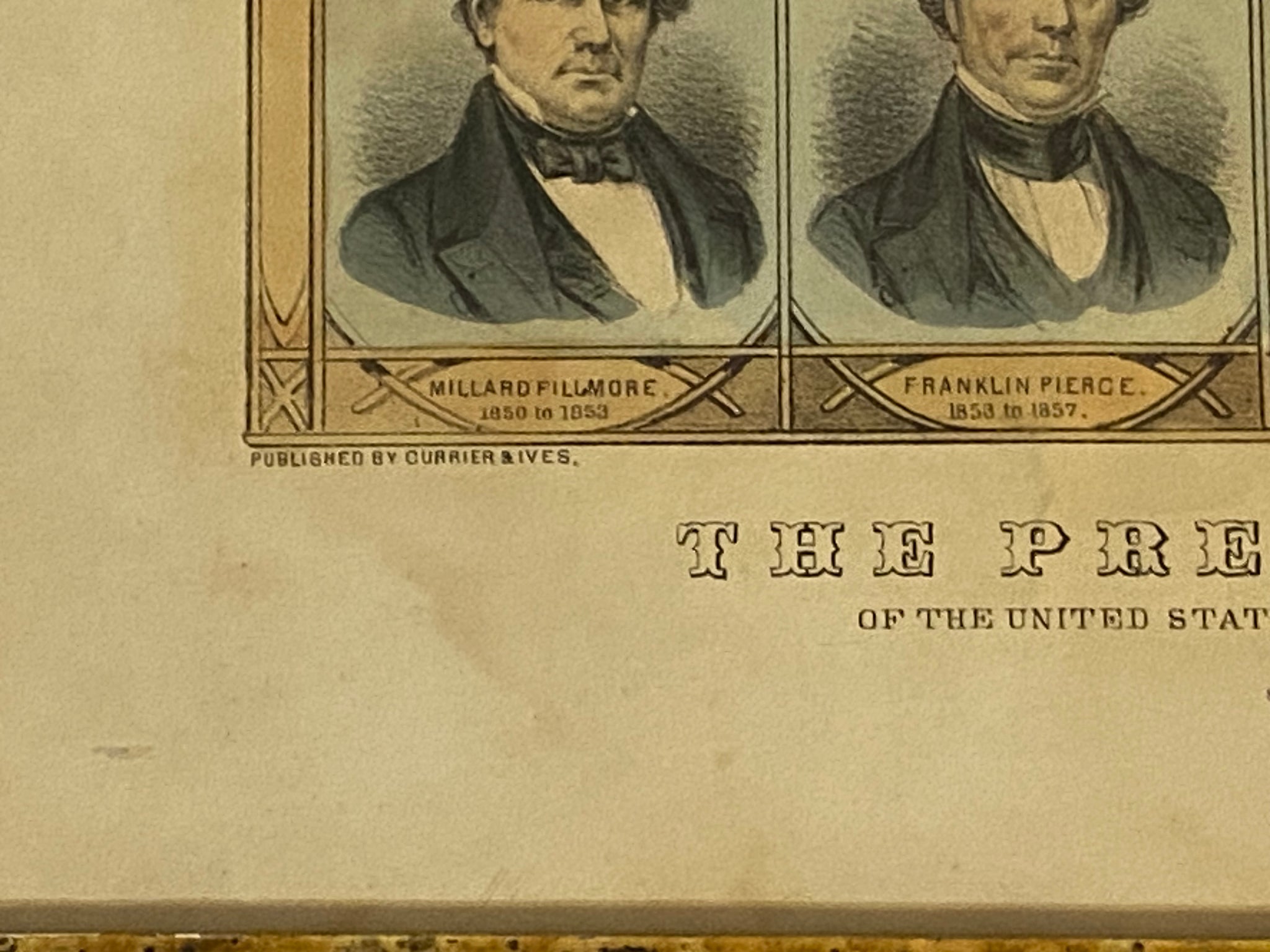 Original Currier and Ives Print “The Presidents of the United States from 1789 - 1865”. In very good condition with no damage or repairs and retains good color. The sheet measures 12” by 16”.
