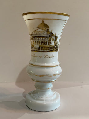 19th Century Historical Bristol Glass Vase With Boston State House Massachusetts