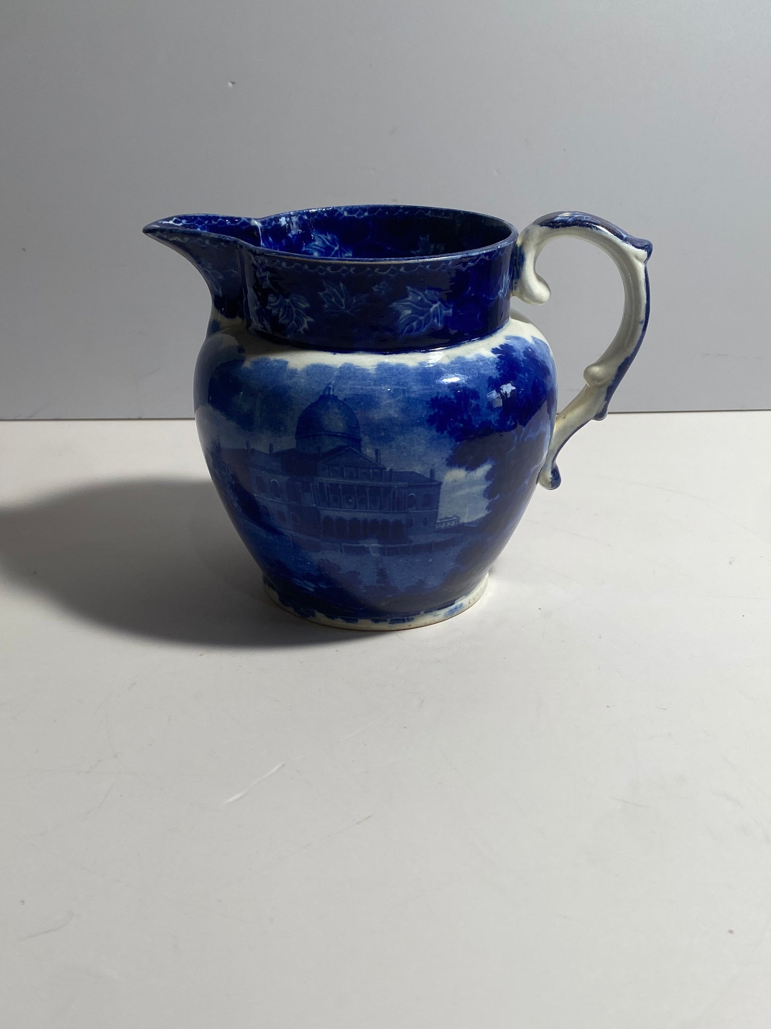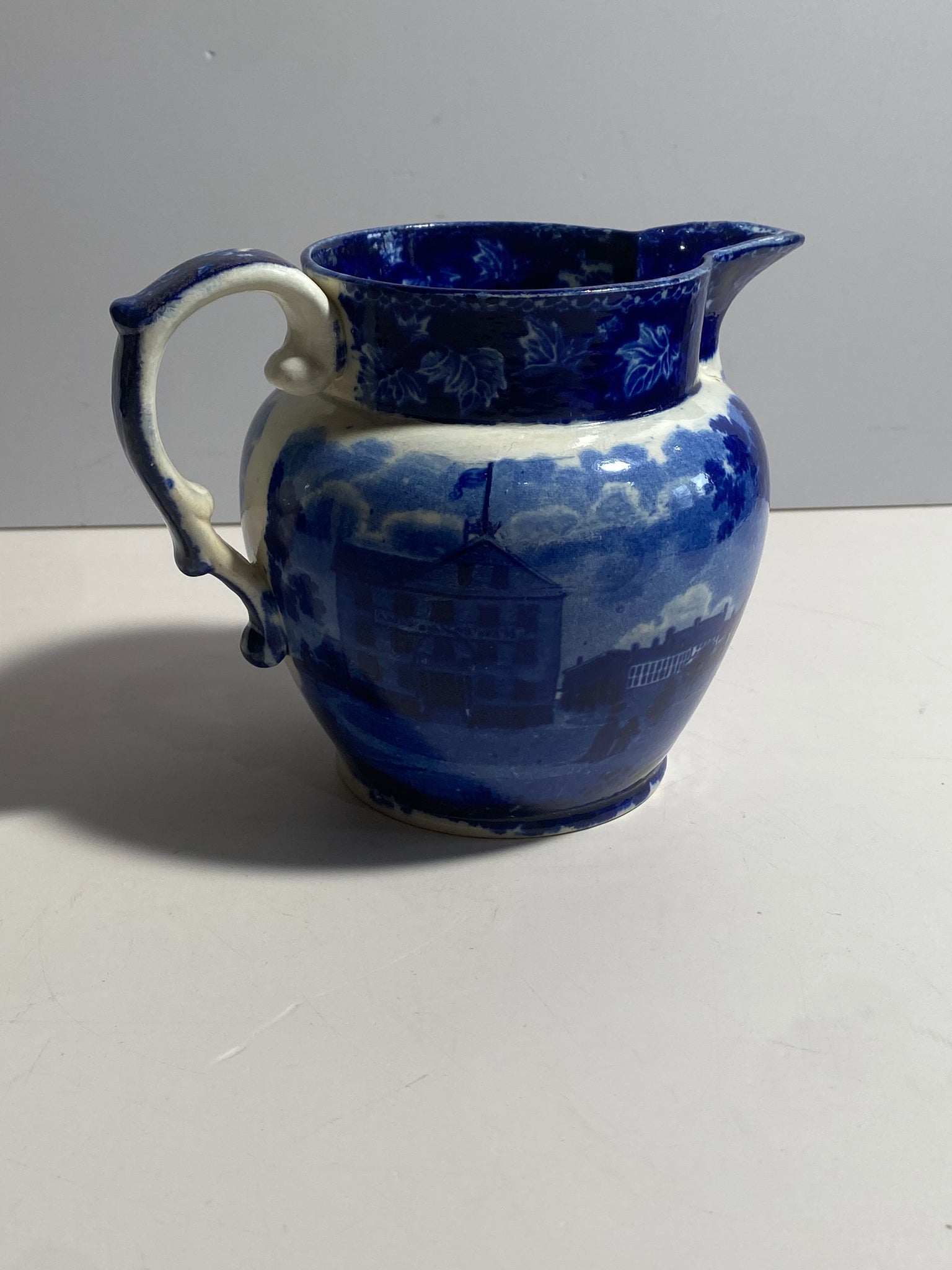 Historical Staffordshire Blue Pitcher Boston State House Scudder’s Museum 1825