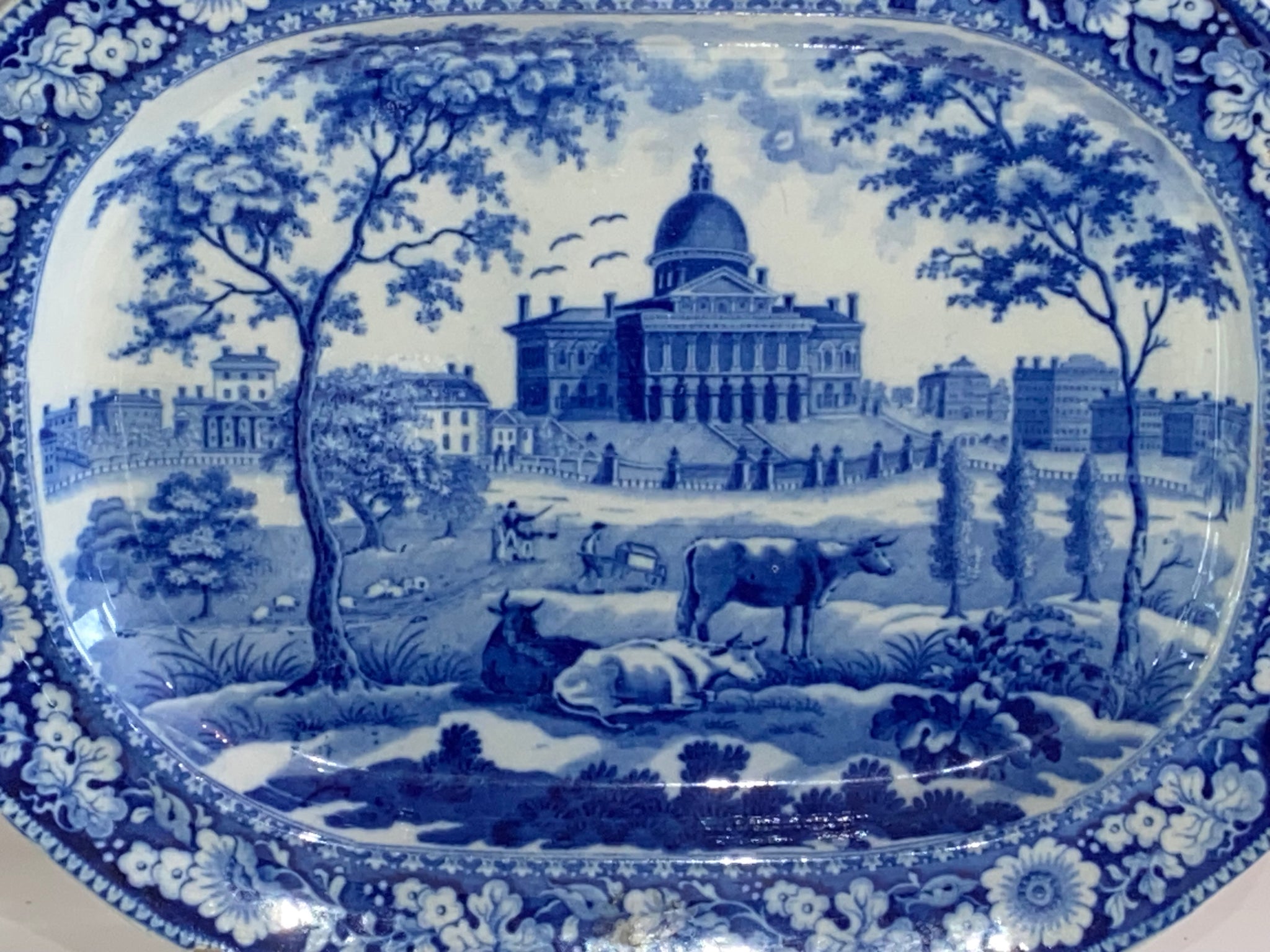 Historical Staffordshire Blue Small Platter Boston State House Ca. 1825
