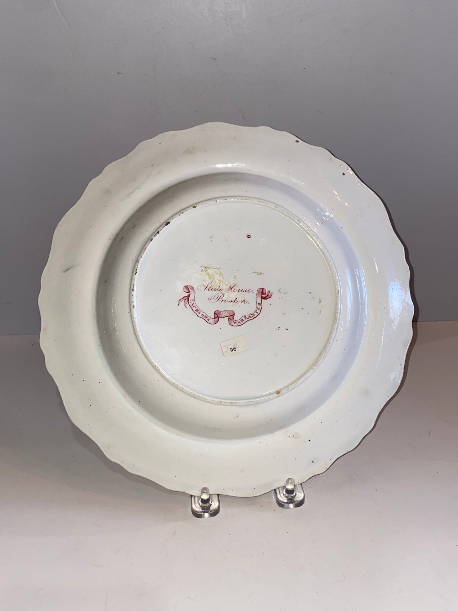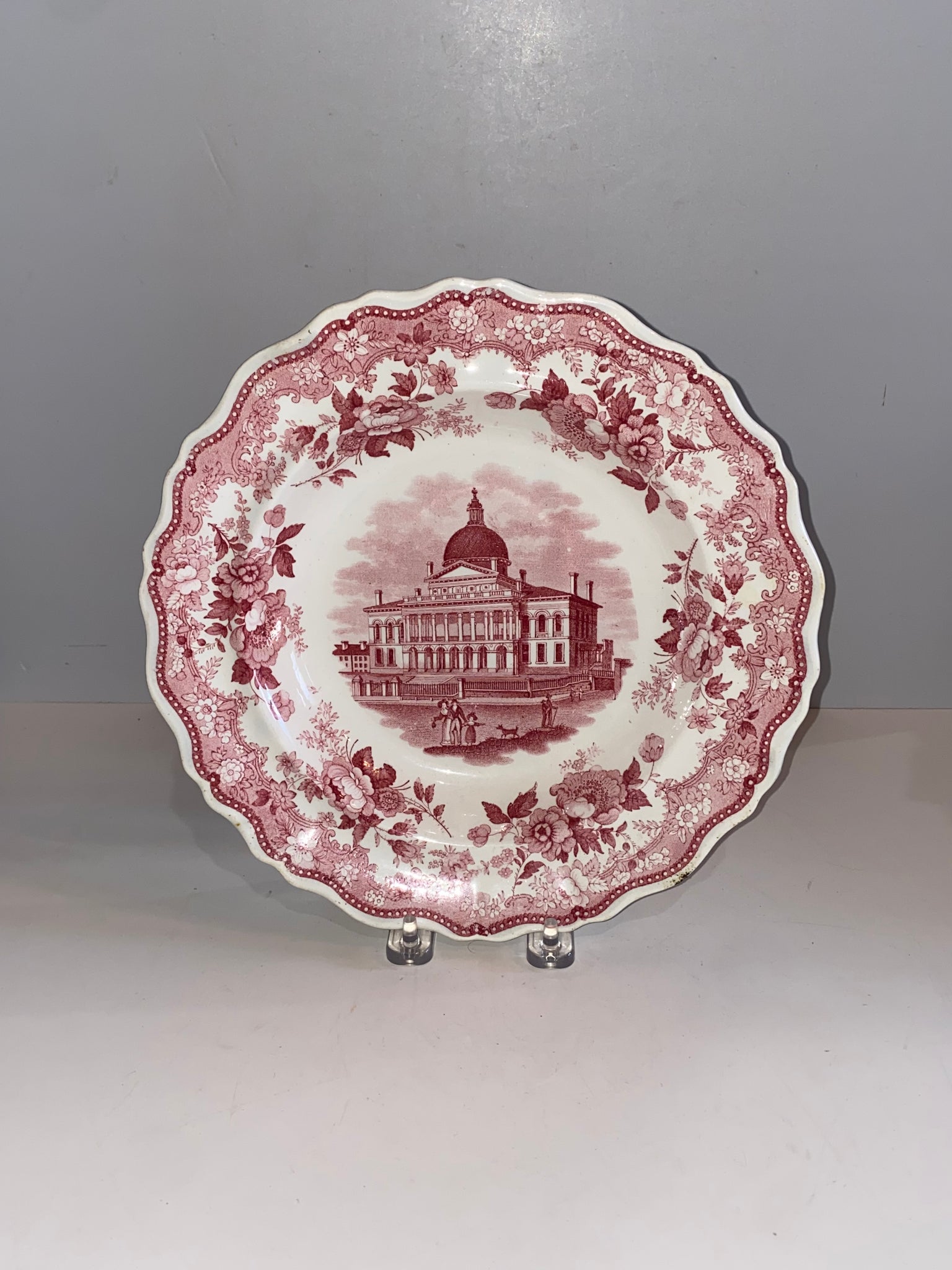 Historical Staffordshire Pink Transfer Soup Plate Boston State House Ca. 1825