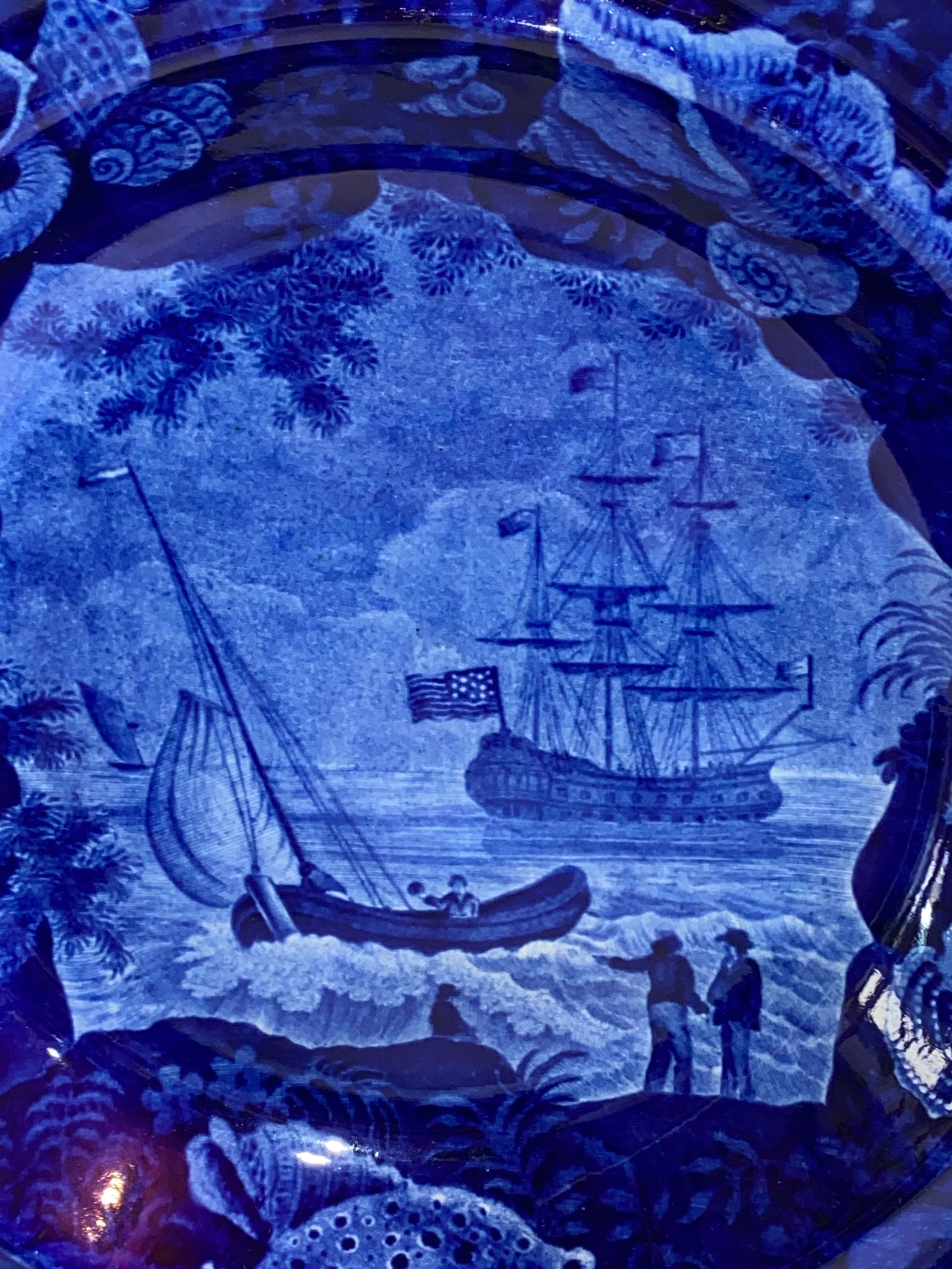 Historical Staffordshire Soup Plate Ship Cadmus Lafayette’s Boat Ca. 1825