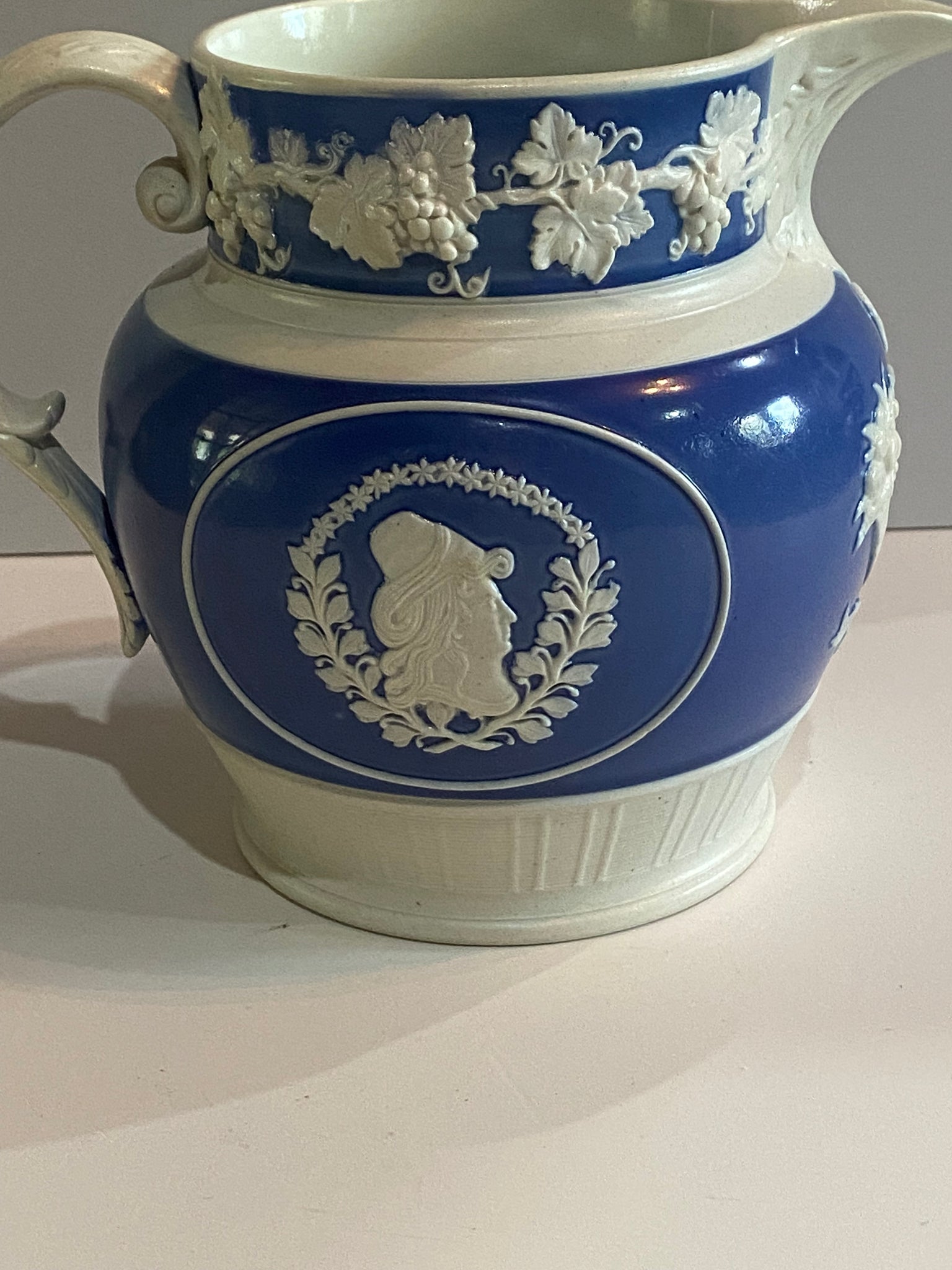 Staffordshire Jasperware Pitcher Peace and Plenty Columbia and Seal of United States