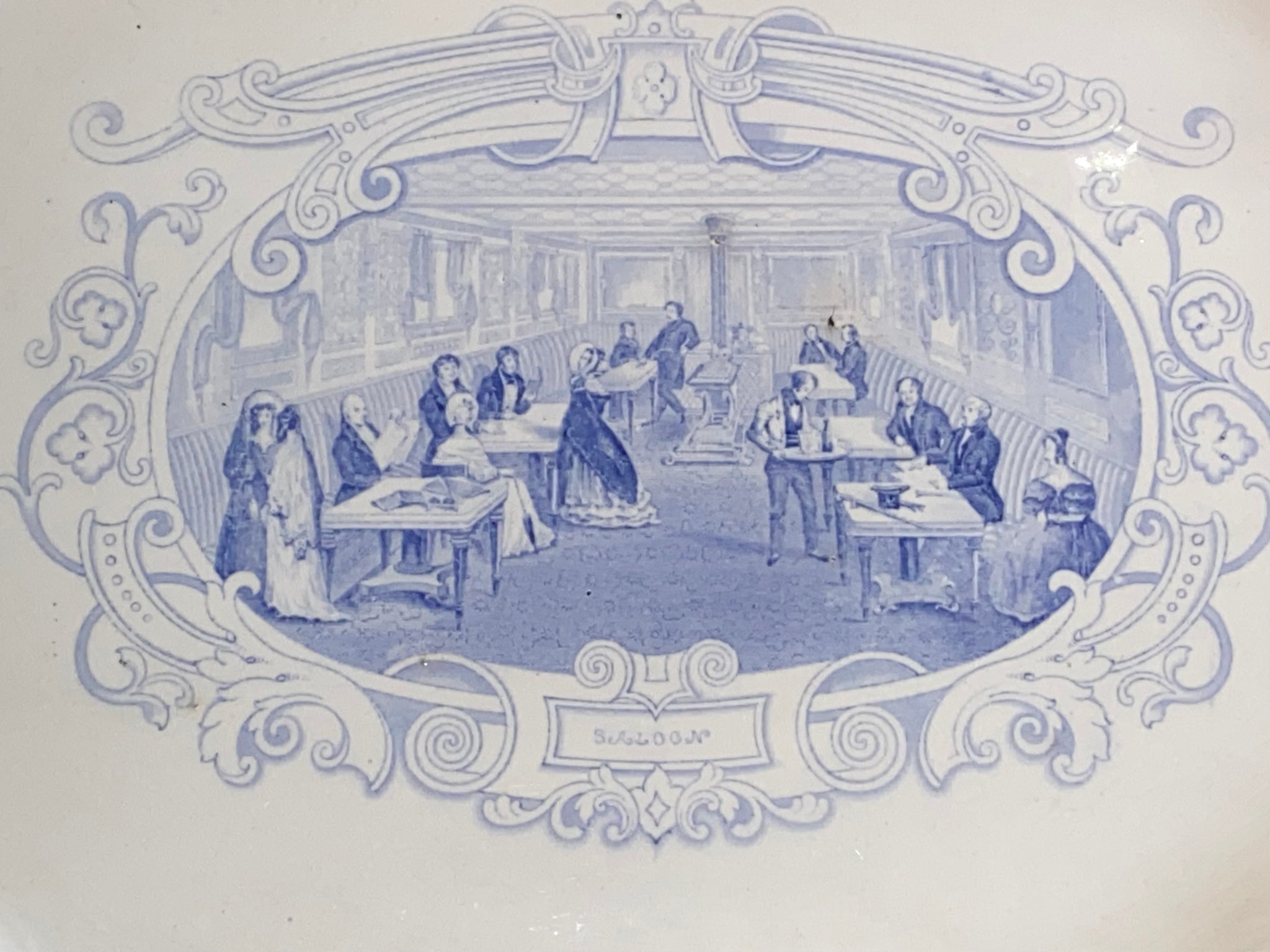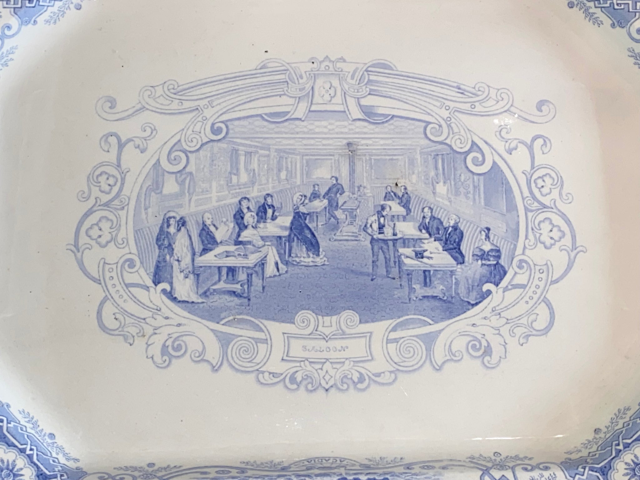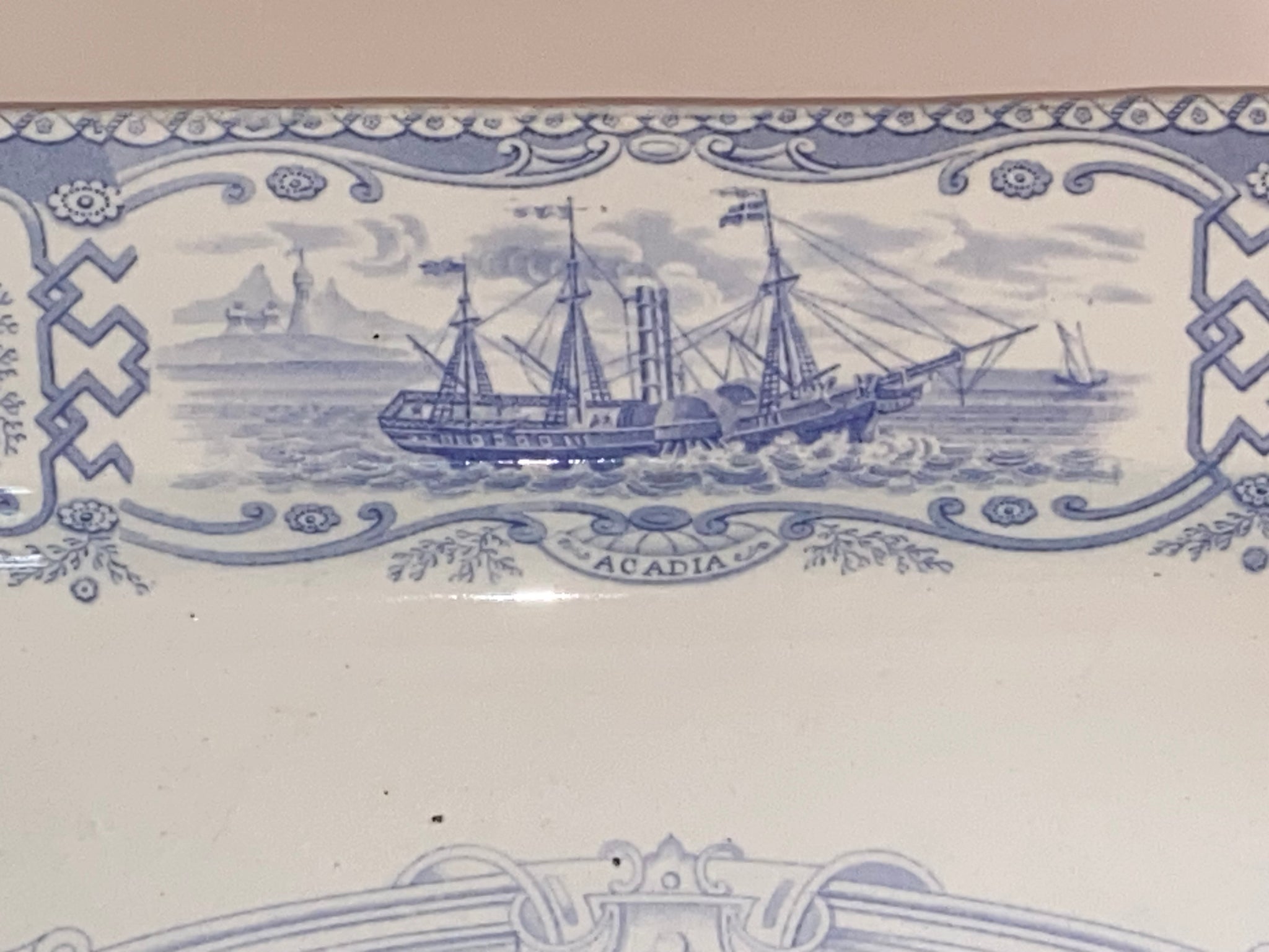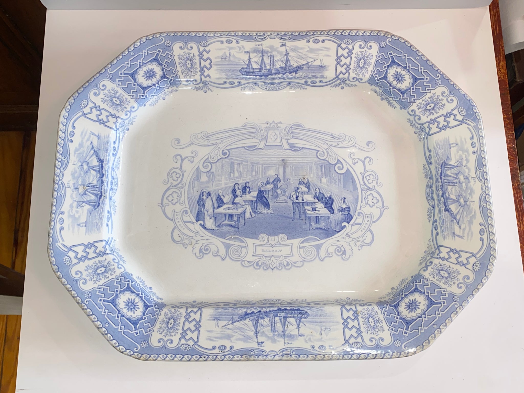 Historical Staffordshire Blue Platter Boston Mails Steamship Ca. 1840
