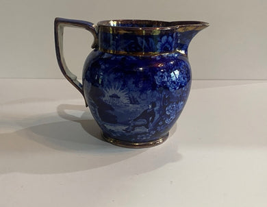 Historical Staffordshire Blue Small Pitcher Lafayette At Franklins Tomb Luster