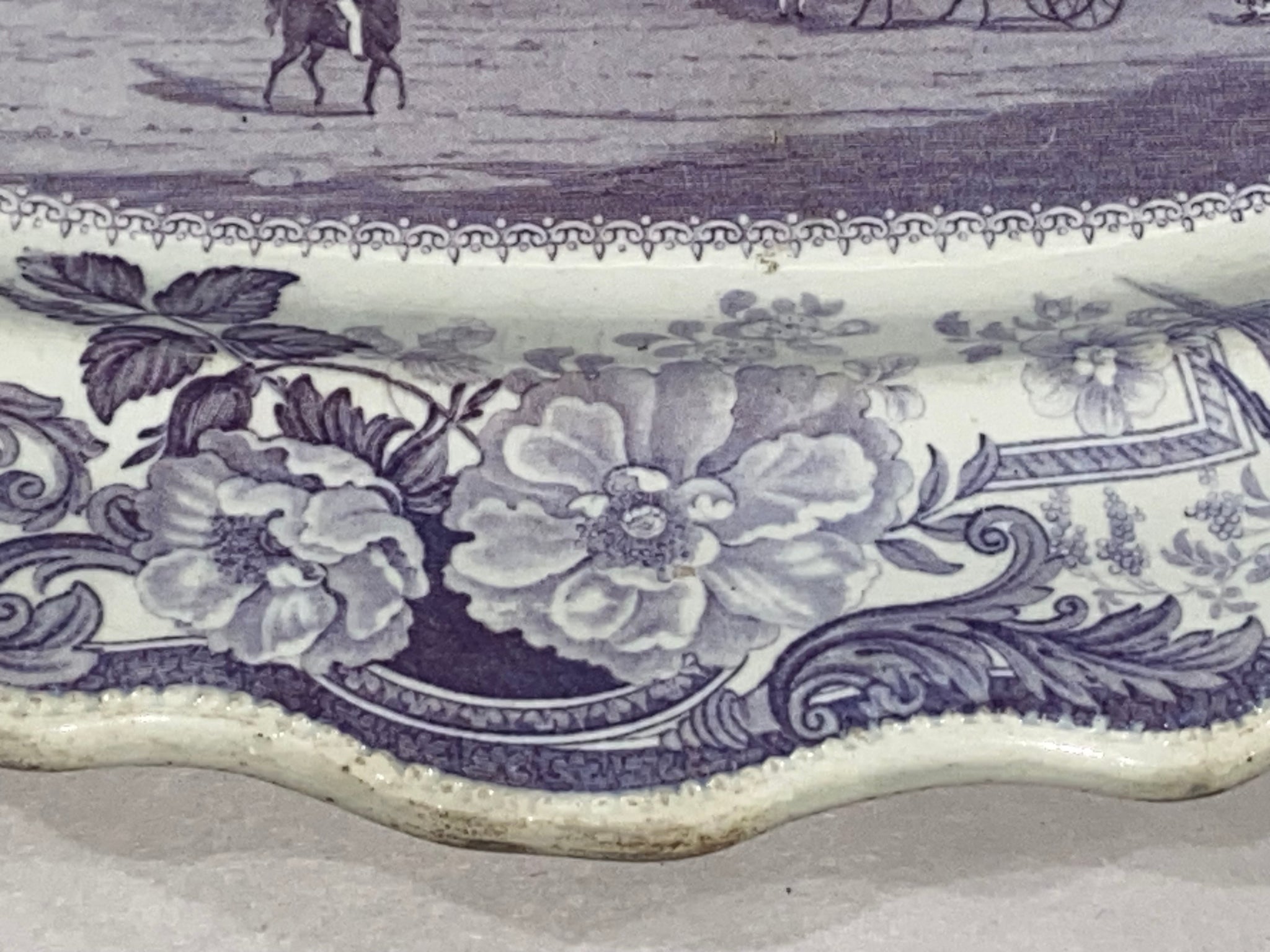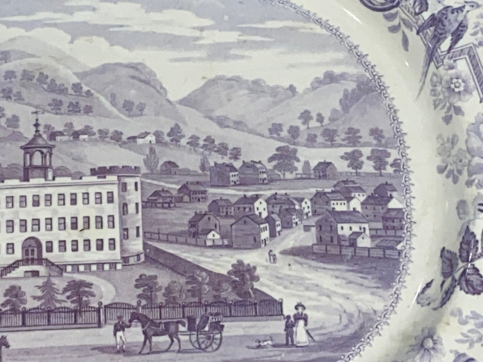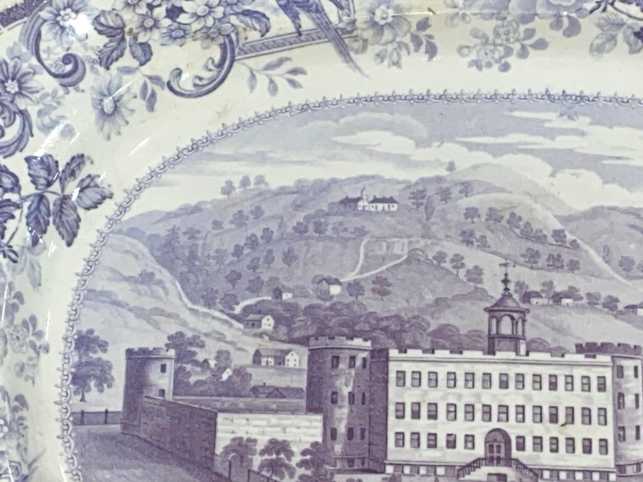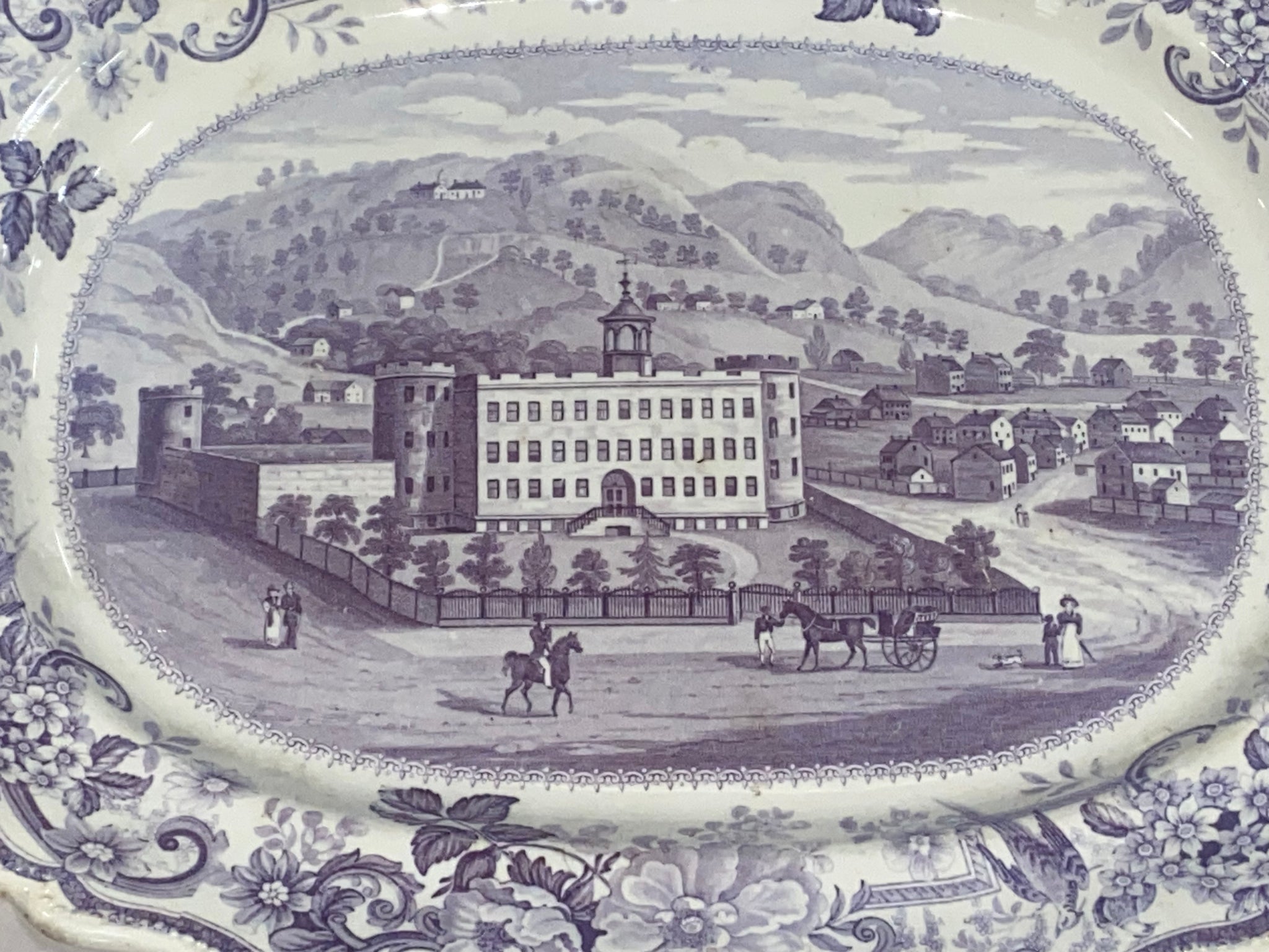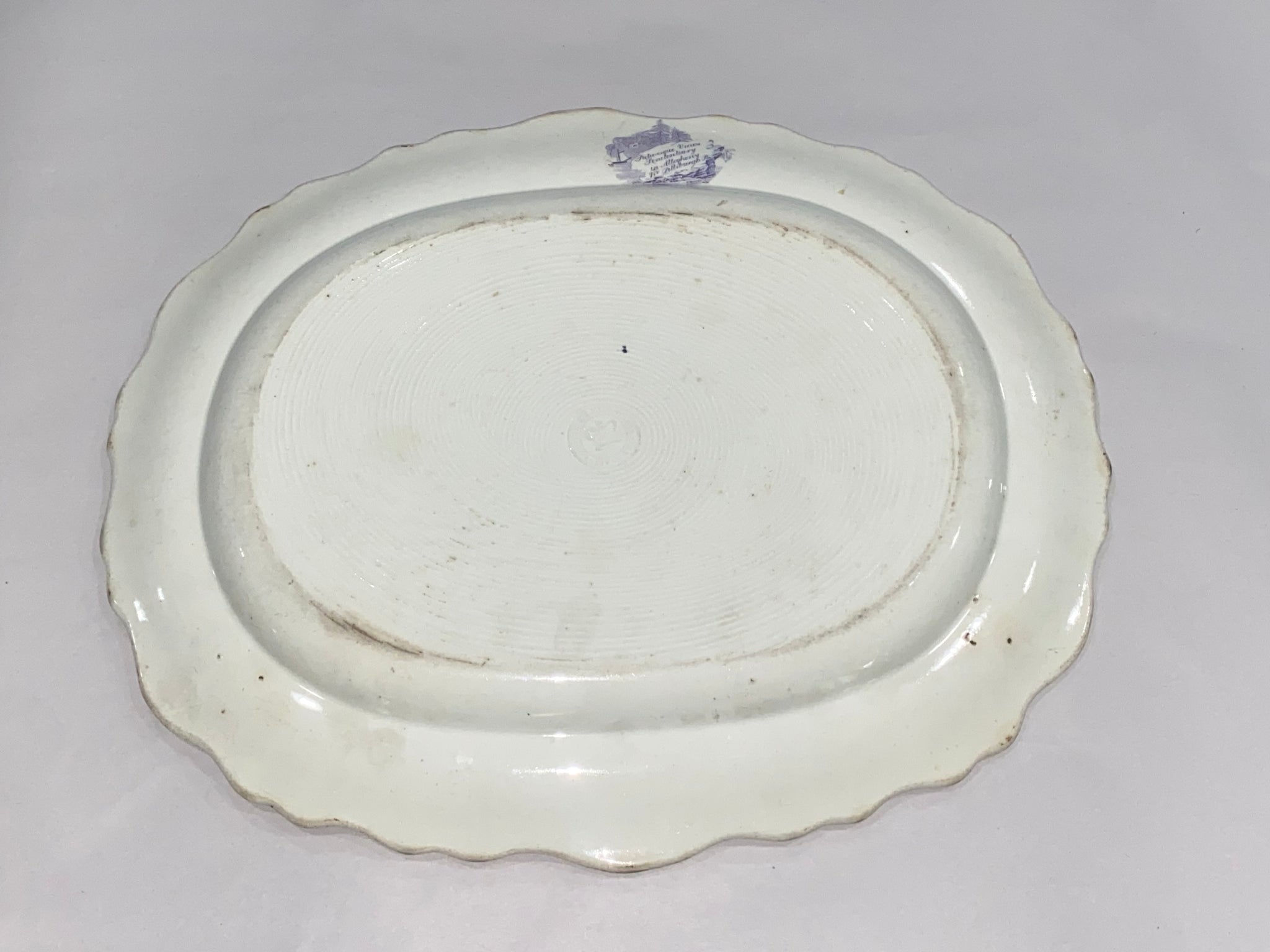 Historical Staffordshire Allegheny Pittsburgh Penitentiary platters in mulberry color. From James and Ralph Clews Picturesque views series. In perfect condition with no chips, cracks or repairs. It measures 12 3/4” by 15 1/4” and dates circa 1835.