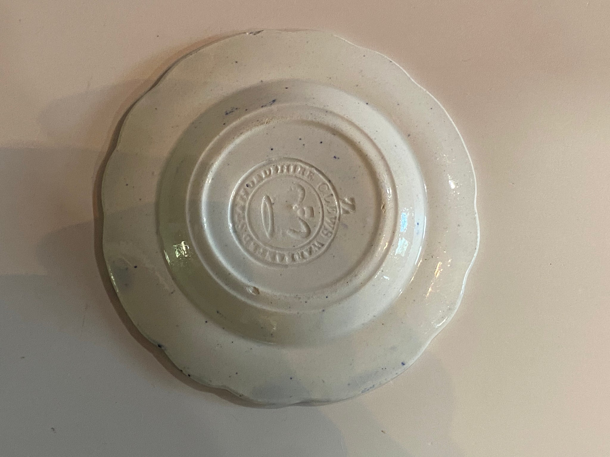 Historical Staffordshire blue cup plate in the “States” pattern by Clews. These are fairly scarce and this one is in very good condition with no repairs. Just a very tiny pin nip on the edge. It measures 3 7/8” in diameter and dates circa 1825.