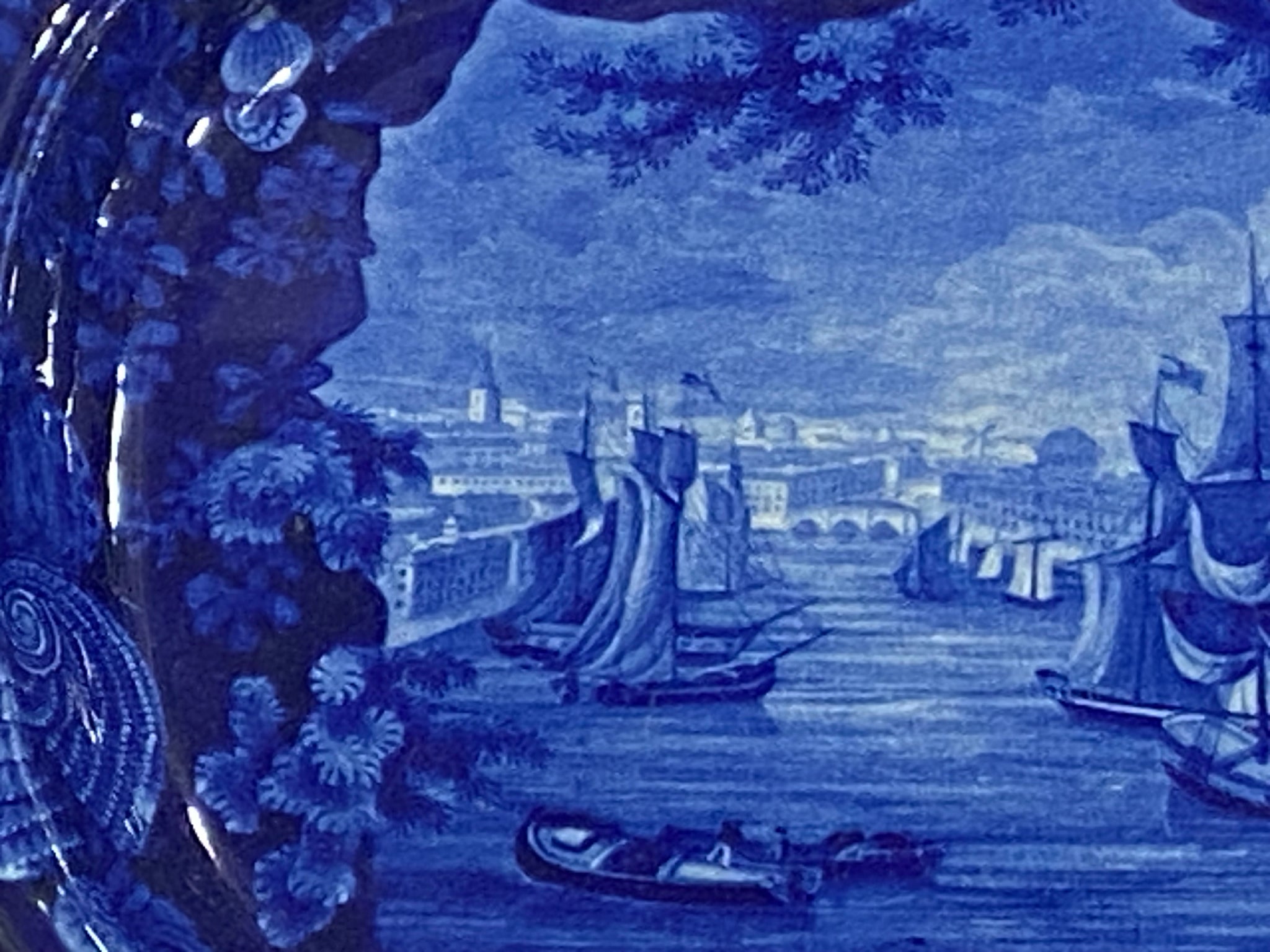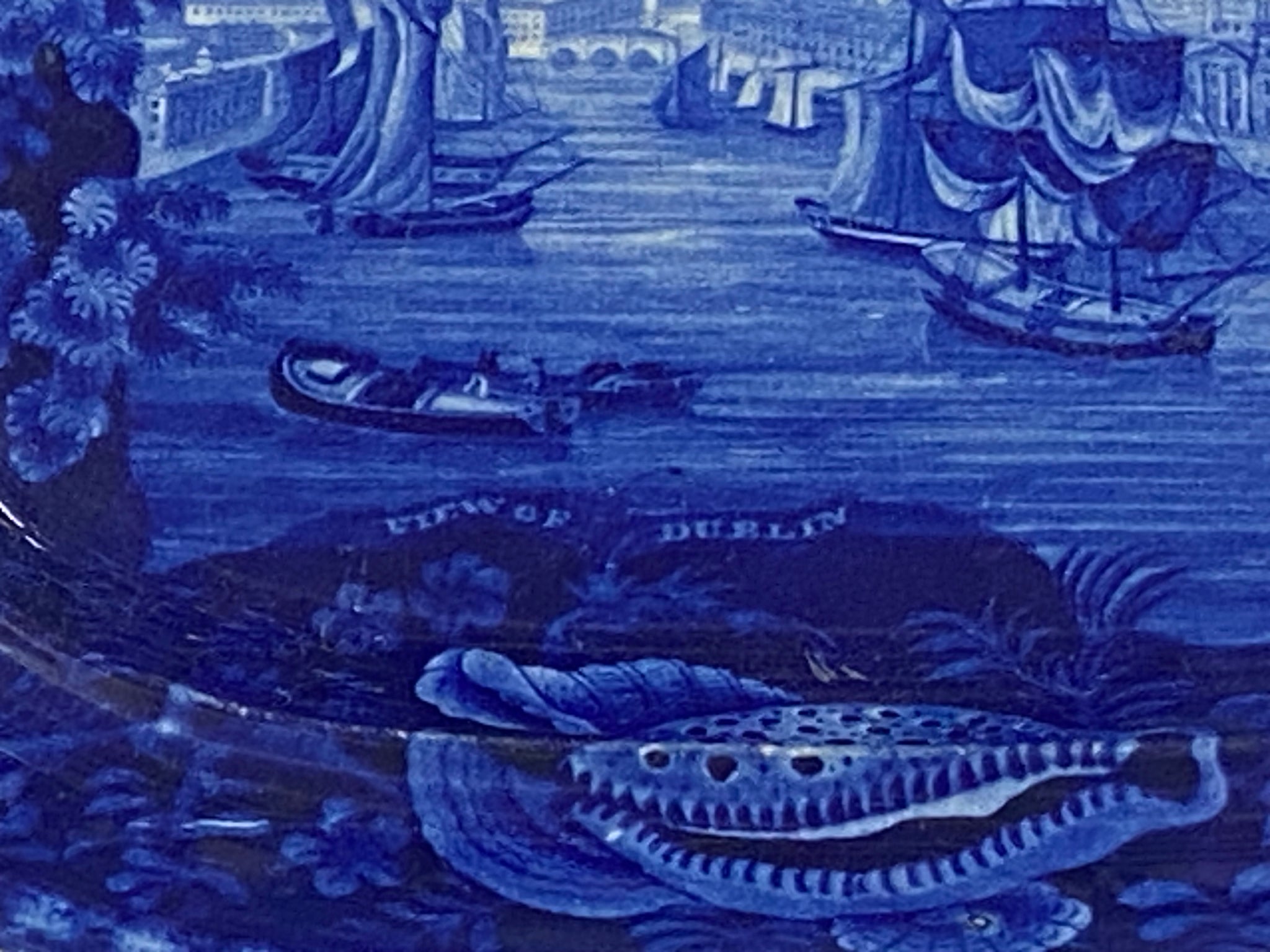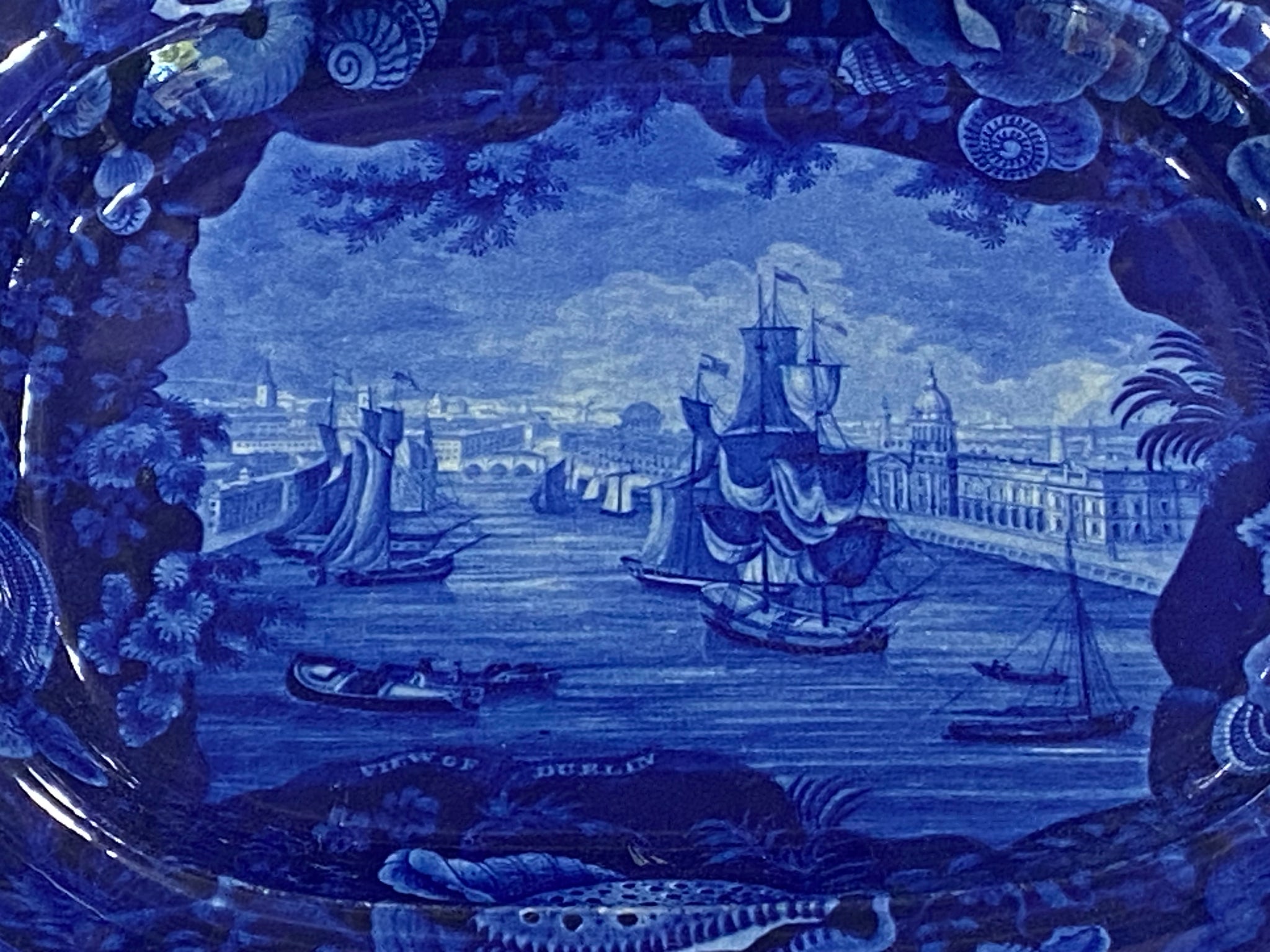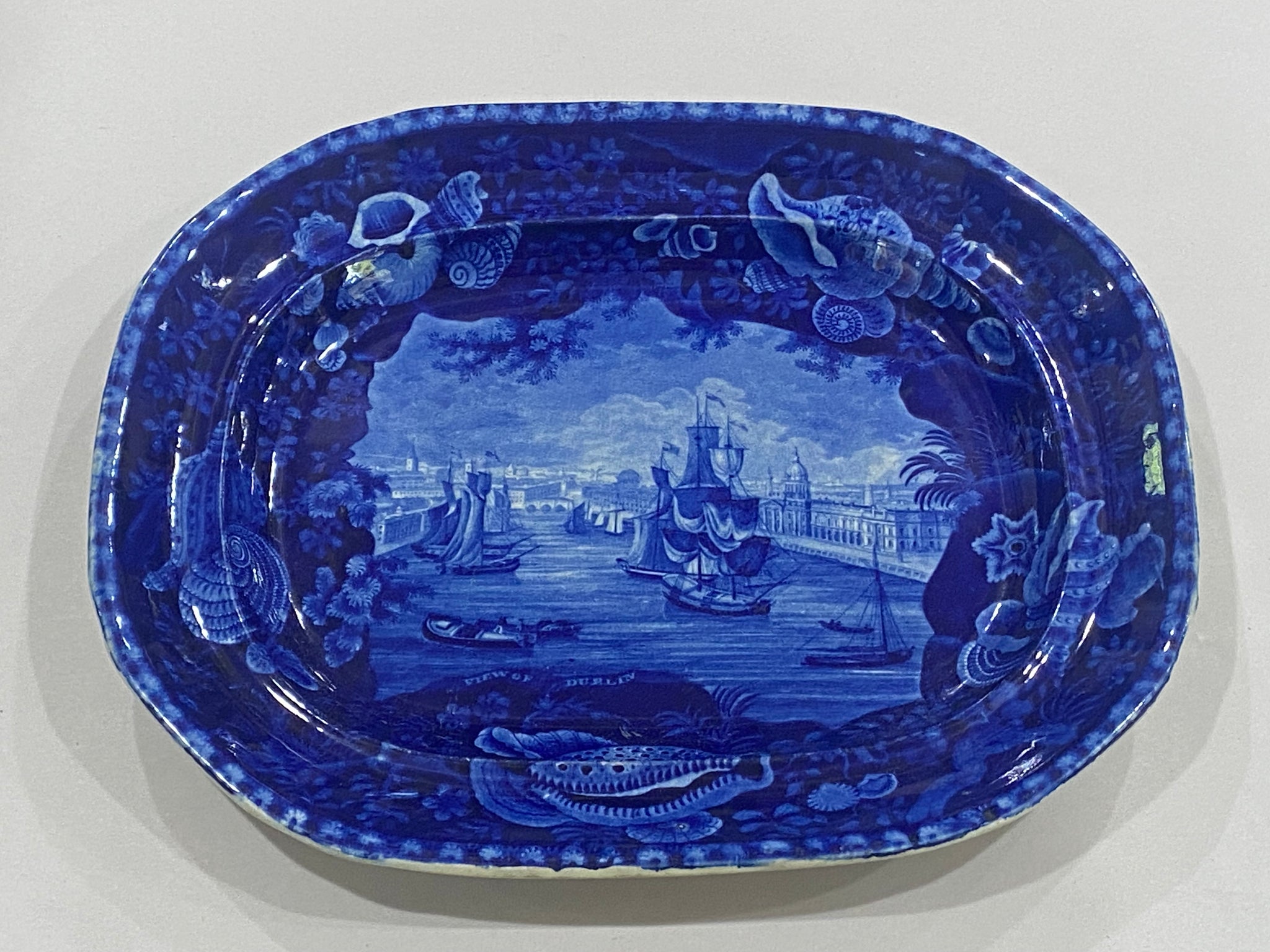Historical Staffordshire blue platter with a “View of Dublin” by Enoch Wood and Sons. Perfect condition with no chips, cracks or repairs and appears virtually unused. It measures 11 3/4” by 14 3/4” and dates circa 1825.