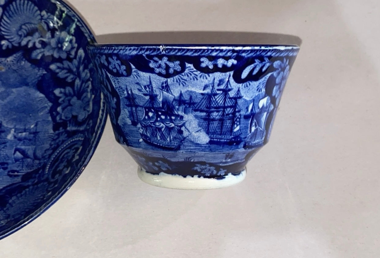 Historical Staffordshire Macdonough’s Victory Cup And Saucer Blue Transfer