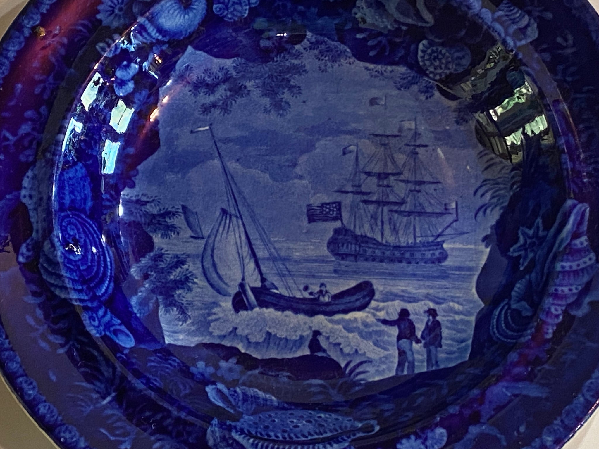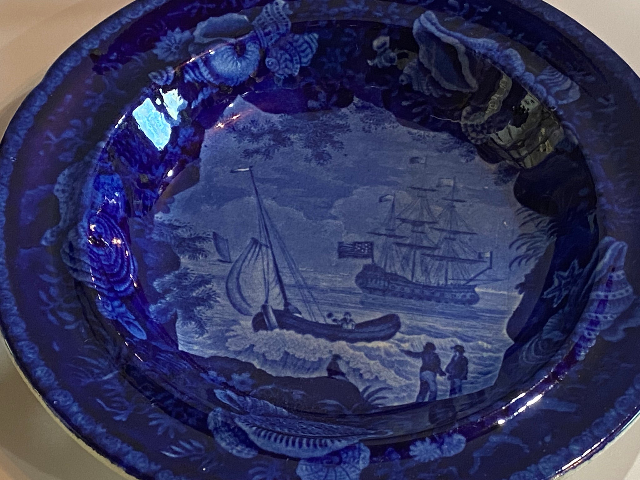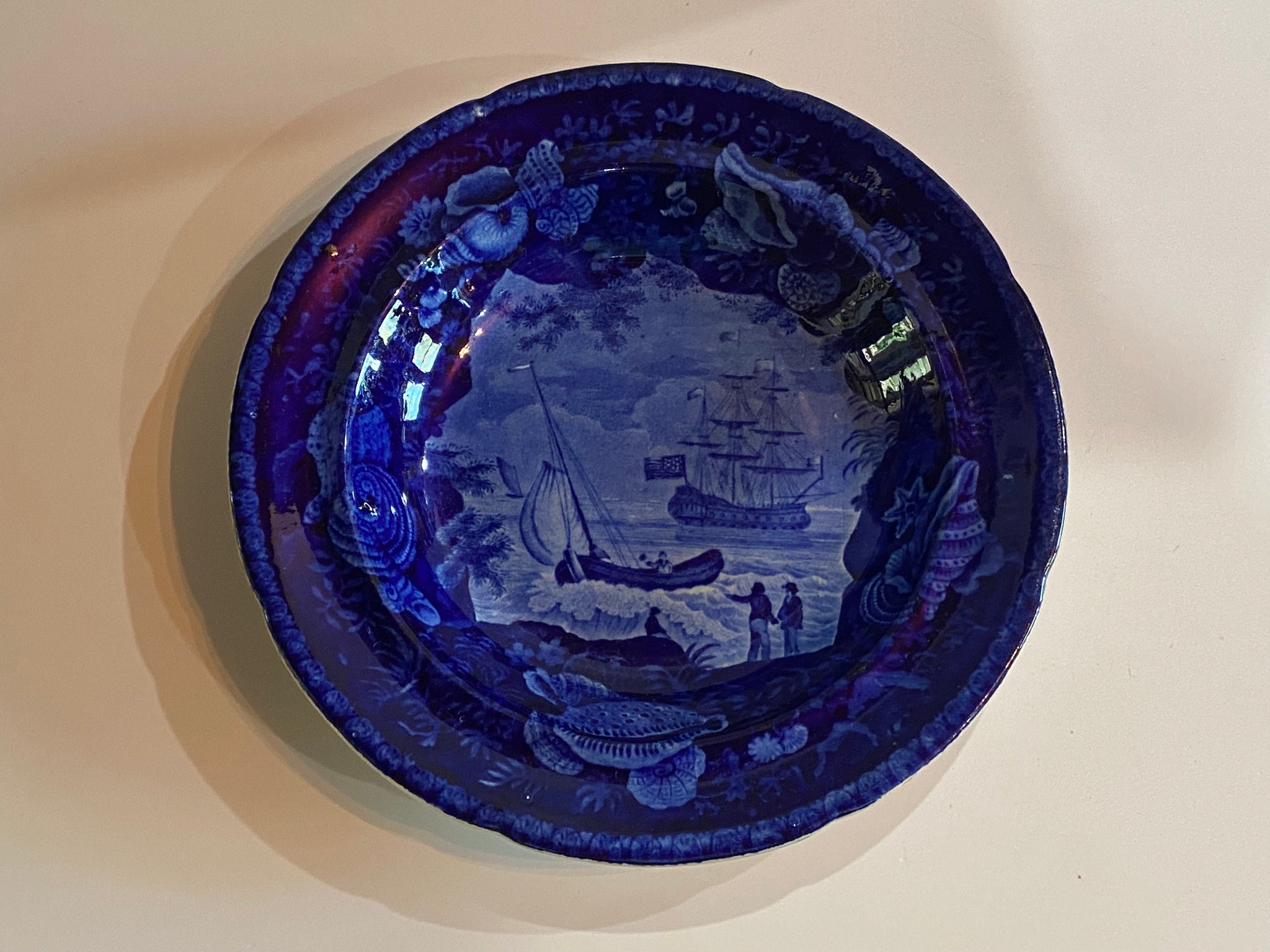 Historical Staffordshire blue soup plate with “Ship Cadmus” by Enoch Wood and Sons. In brilliant perfect condition with no chips, cracks or repairs. It measures 10 1/4” in diameter and dates circa 1825.