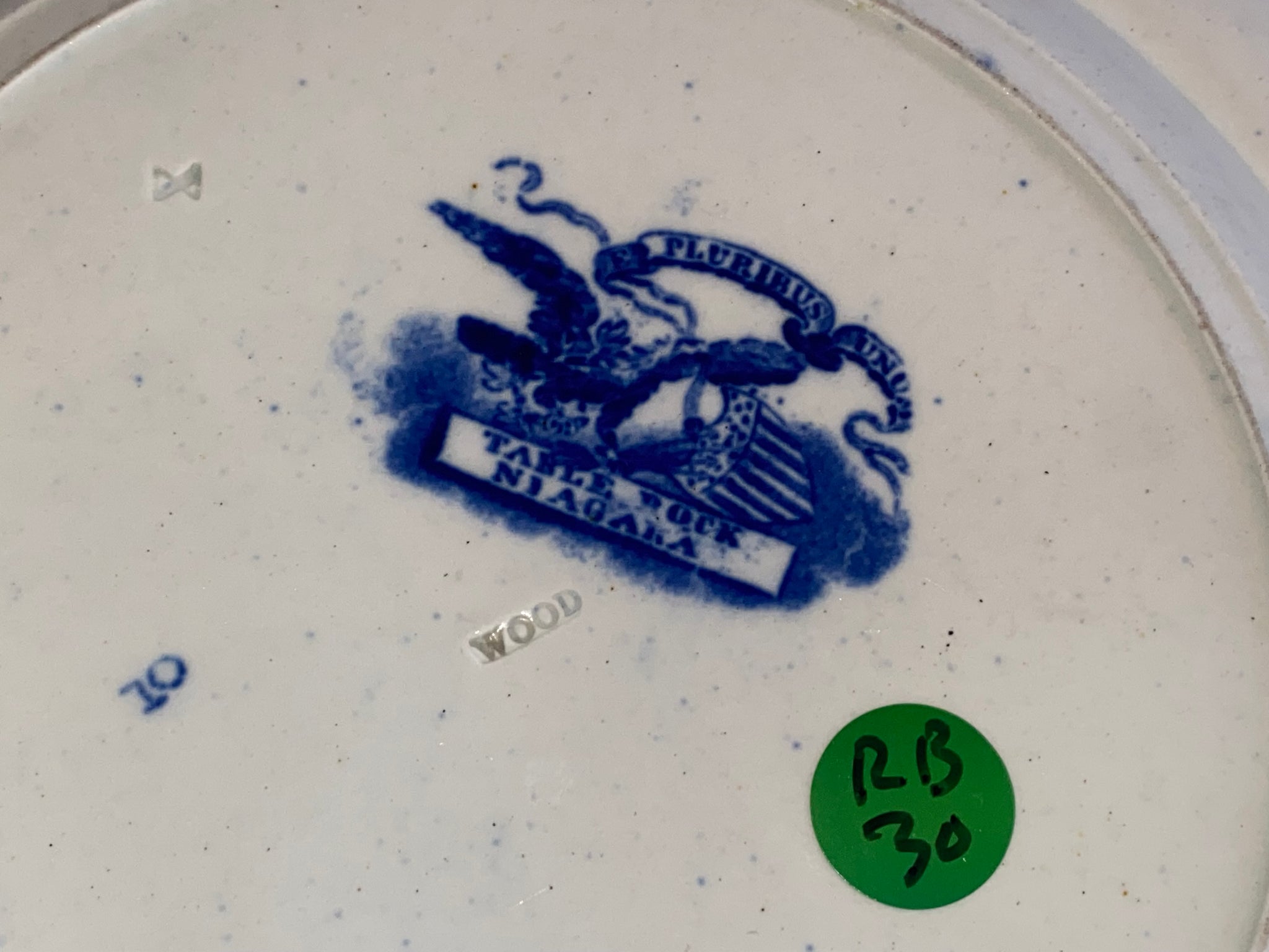 Historical Staffordshire blue dinner plate with a view of “Table Rock Niagara” by Enoch Wood and Sons. Perfect condition with no chips, cracks or repairs. It measures 10 1/8” in diameter and dates circa 1825.