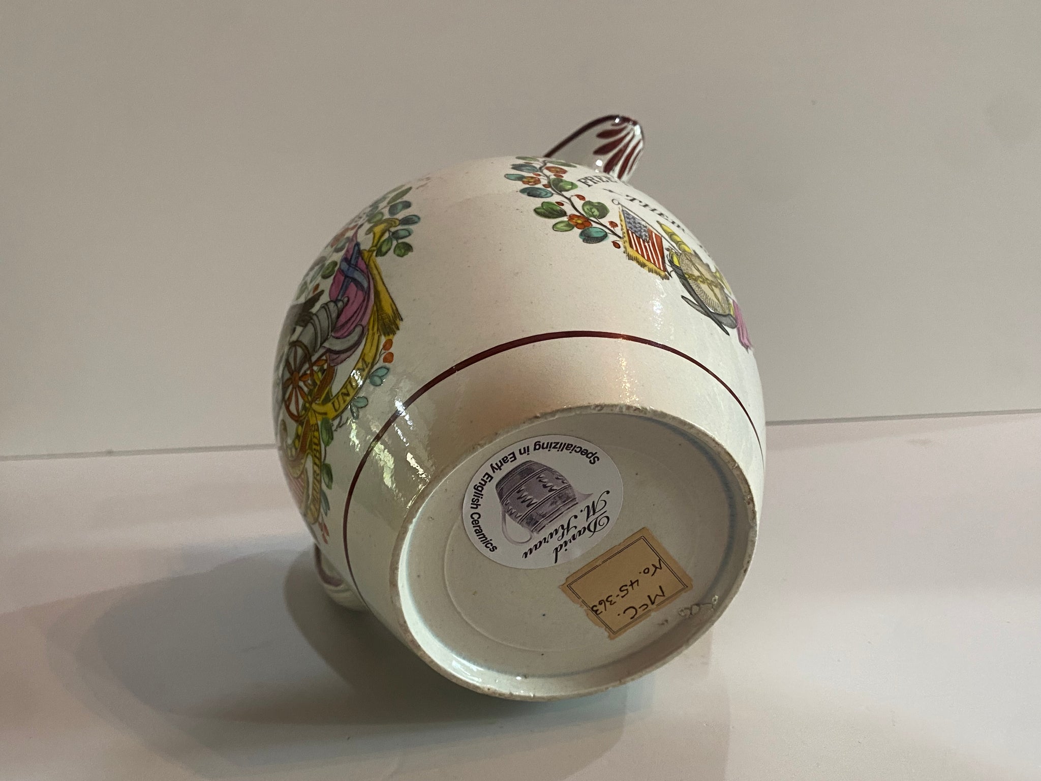 Staffordshire Pearlware Arms of United States and Free Trade and Sailors Their Rights Pitcher