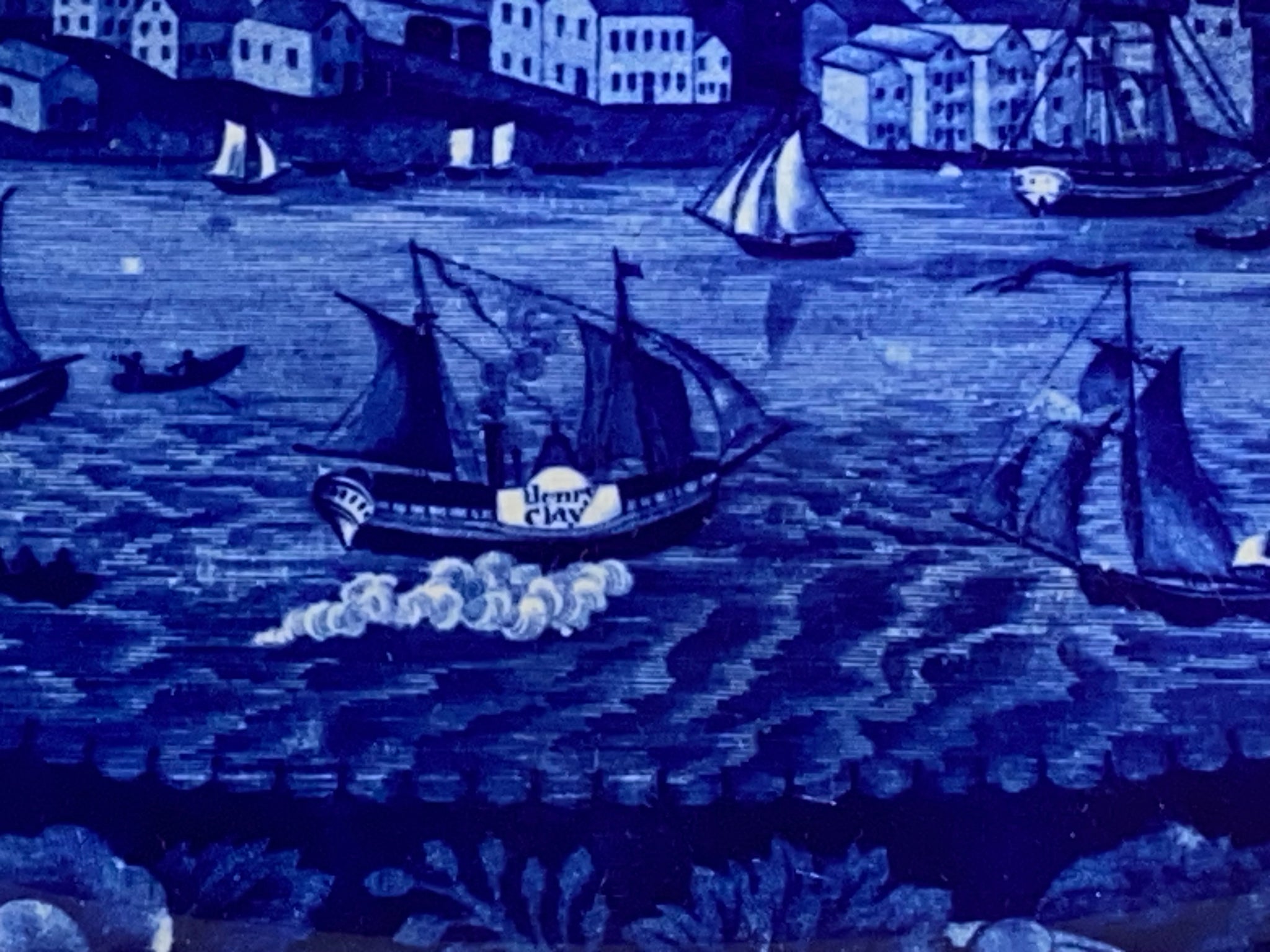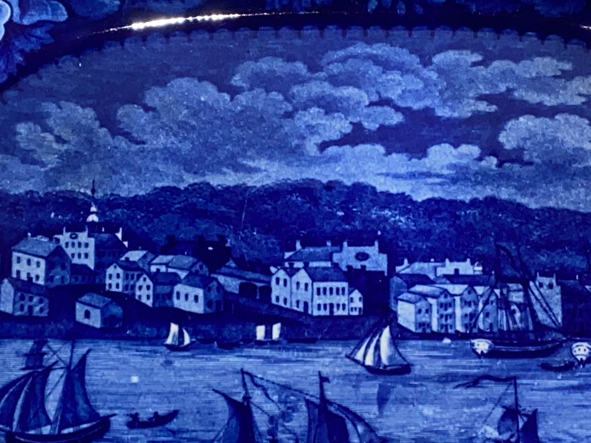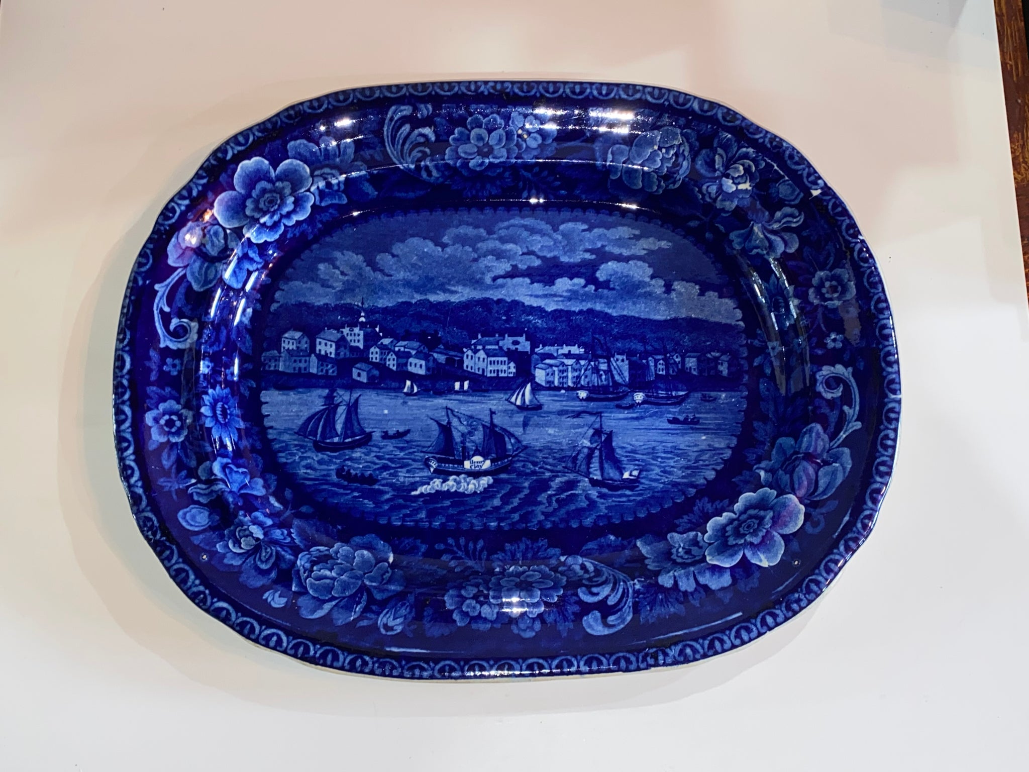 Historical Staffordshire blue platter with view of “Sandusky, Ohio” from the City Series. In excellent condition with no chips, cracks dot repairs and appears virtually unused. It measures 13 1/8” by 16 1/2” and dates circa 1825.