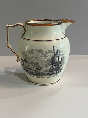 Historical War of 1812 Splash Luster Pitcher With Pike And Hull Ca. 1815
