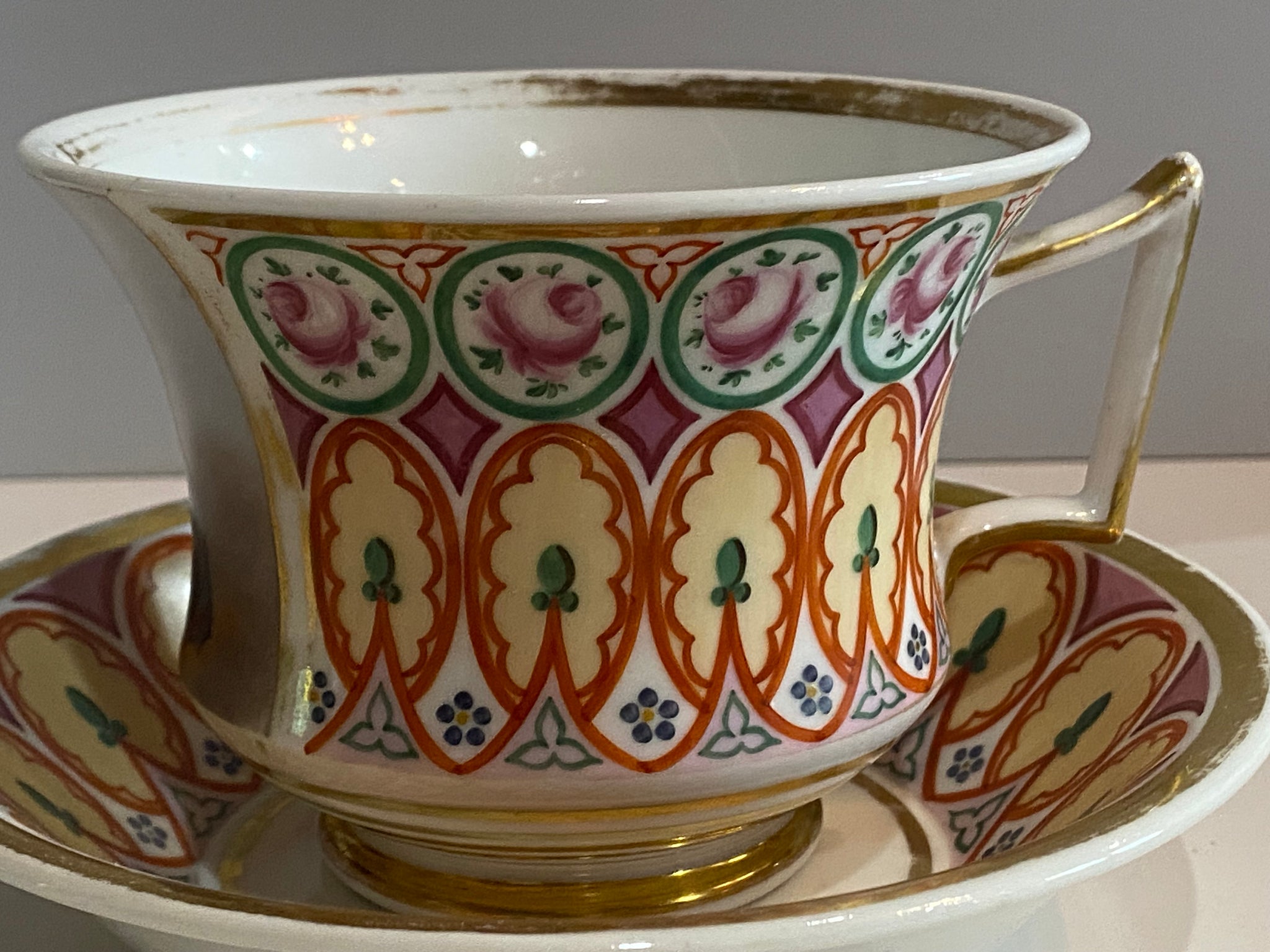 Beautiful 19th Century hand painted porcelain cup and saucer with General Lafayette. Very nicely detailed with gilt accents. Excellent condition other than some minor wear to the gilt. The saucer measures 6 1/4” in diameter.