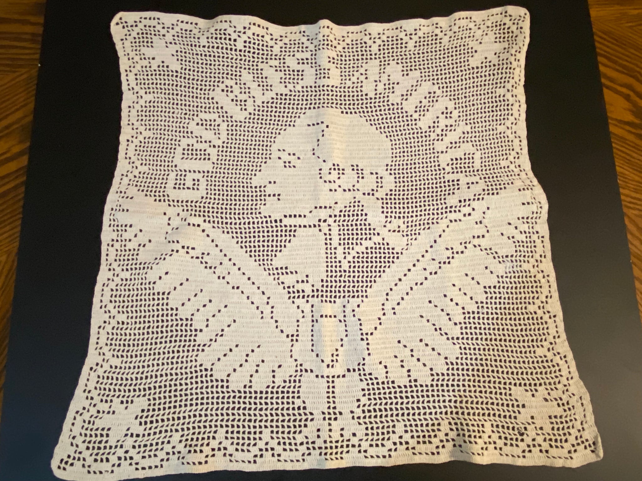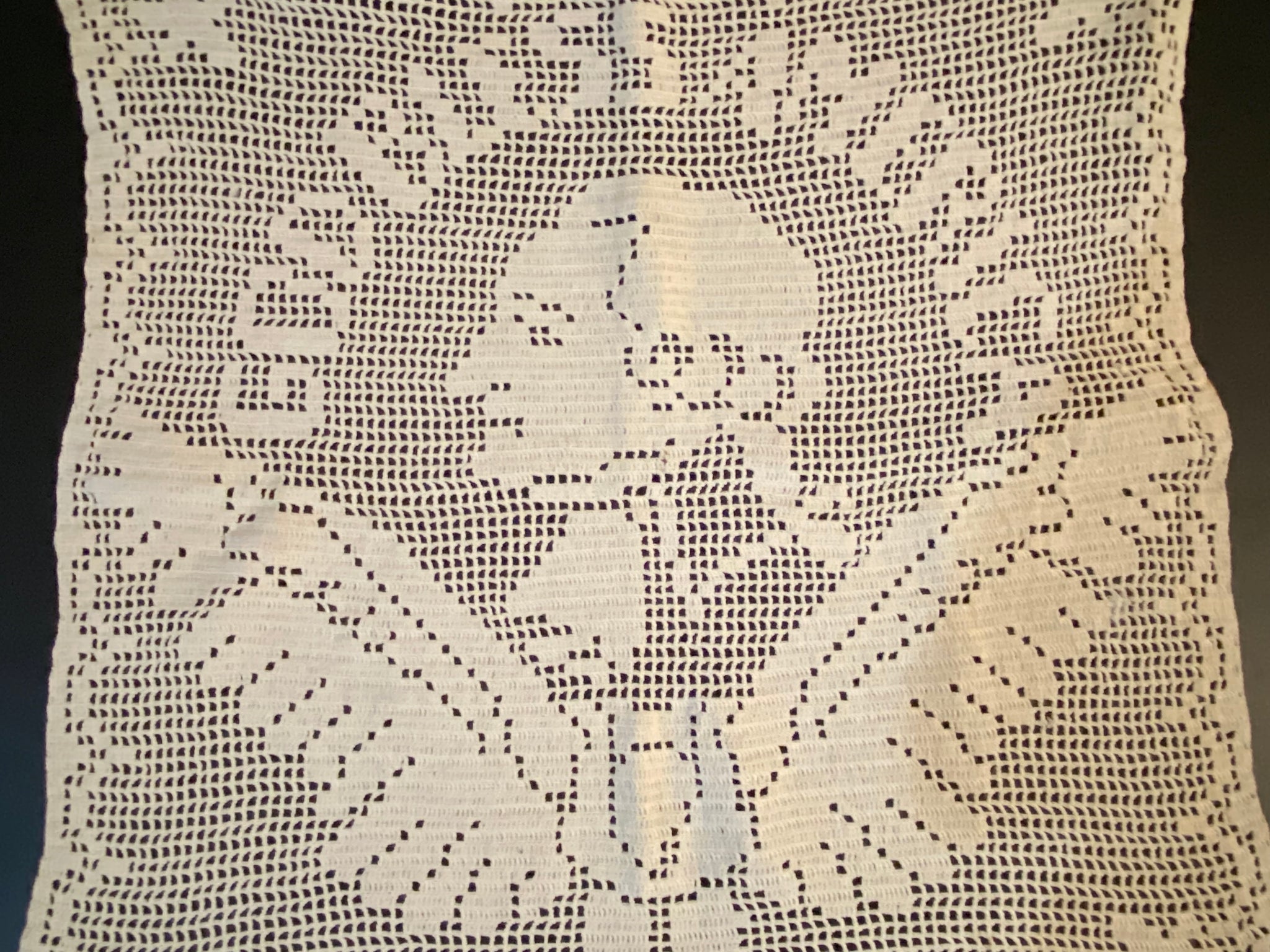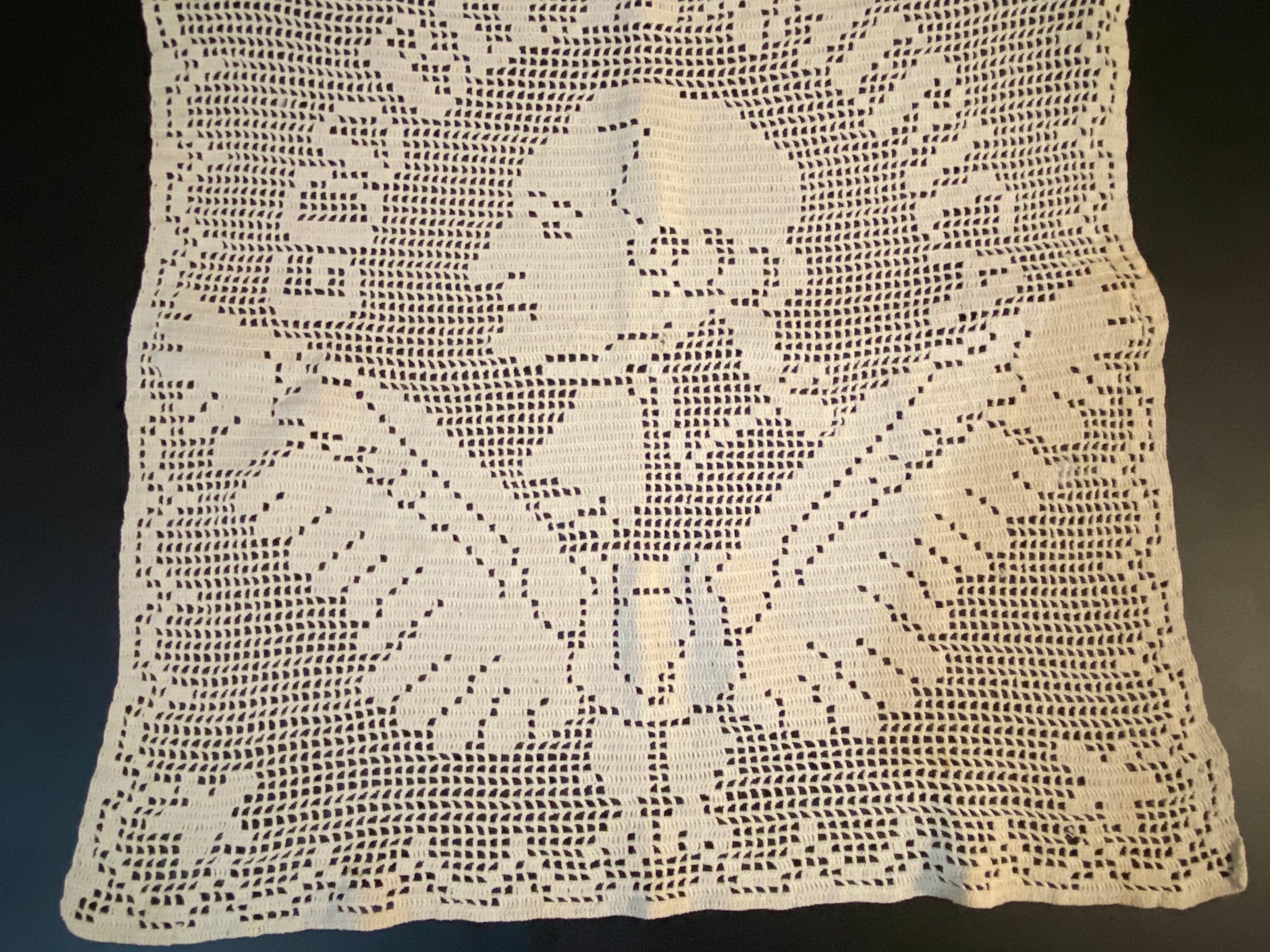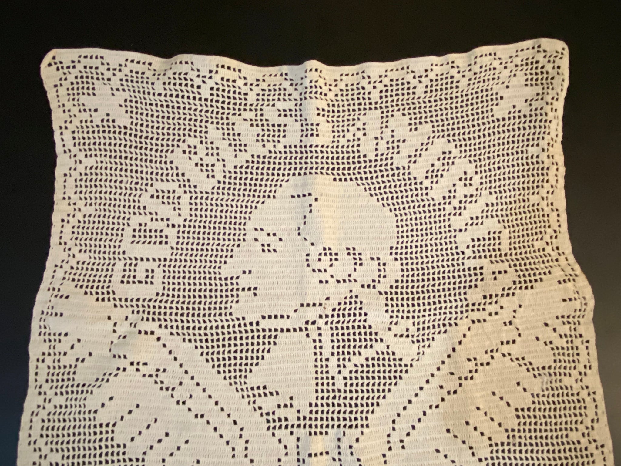 Centennial Embroidered Lace George Washington God Bless America Handkerchief. Guessing this was made around Centennial or early 1900’s. Excellent condition with no stains. Purchased from an older gentleman who said his grandmother made it. It measures 19” by 19”.